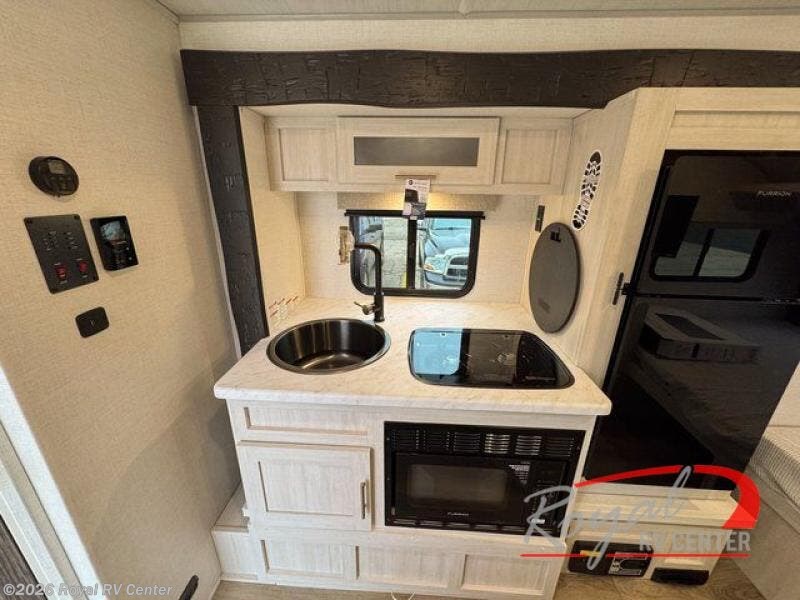 Prepare meals with ease using the built-in appliances and efficient layout designed for convenience on the road.