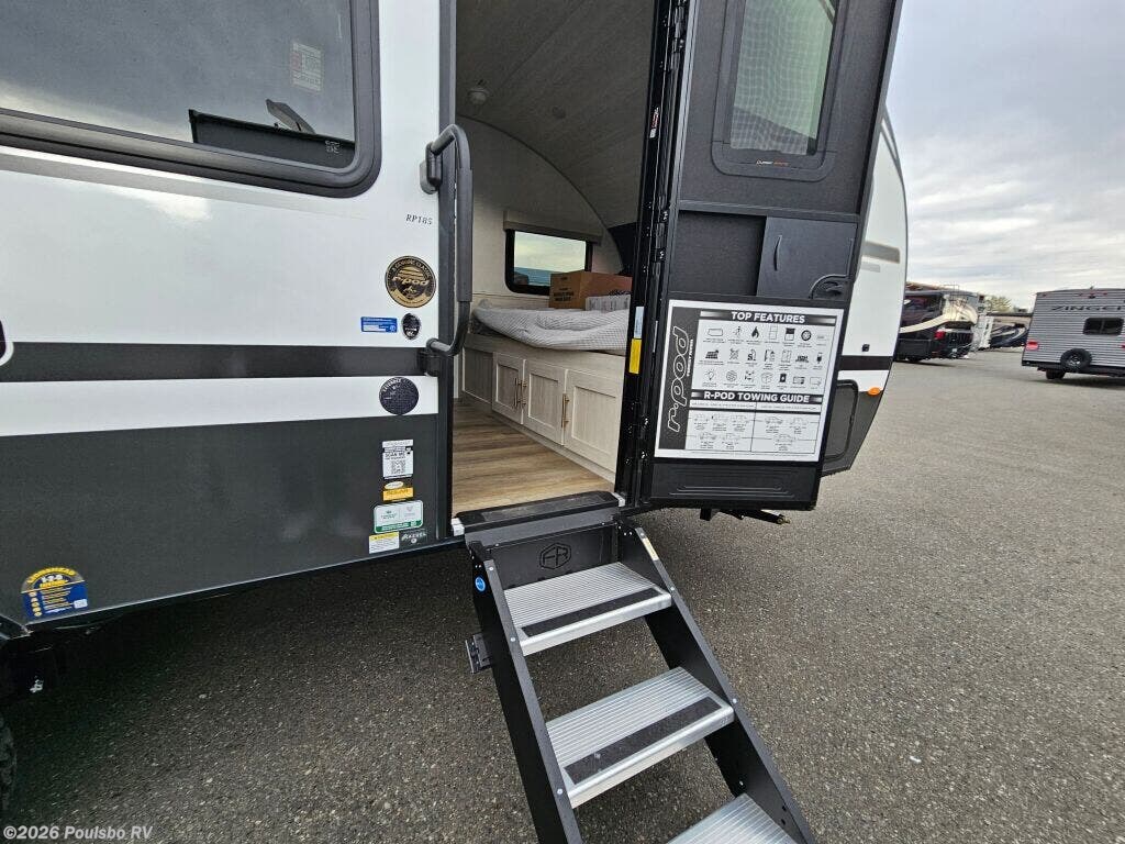 2026 Forest River R-Pod RP-185 for sale. If you are looking for the best way to travel across the country in style, and comfort, an RV is the best way to go. Take road trips anytime with the R-Pod. Set out across the country, visit landmarks, weekend camping trips, travel around in style and comfort without the need for a hotel. It is loaded with features, options, and incredible comfort throughout. Contact us today for more details about this Forest River R-Pod. As a family-owned, award-winning local RV dealer with multiple locations in Sumner, Everett, Kent, and Mt. Vernon, Washington, Poulsbo RV is dedicated to helping you find the perfect travel companion. Let our knowledgeable team assist you in selecting the ideal RV that best for you.Ã Stock#: E5974 | 2026 Forest River R-Pod.