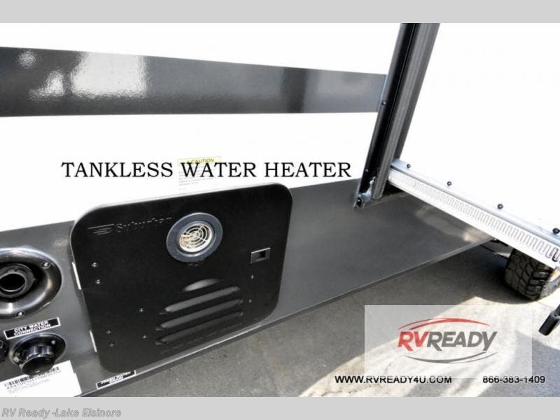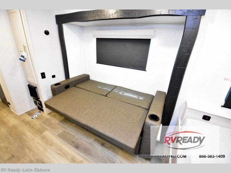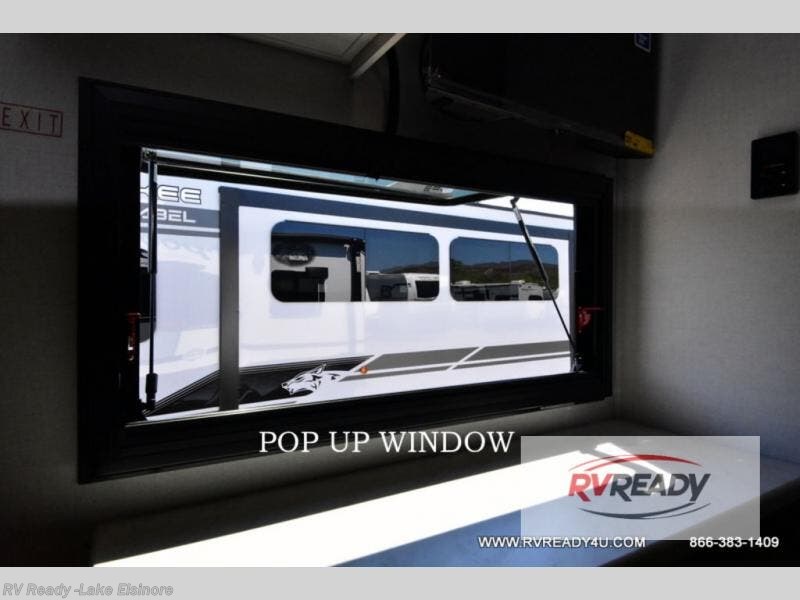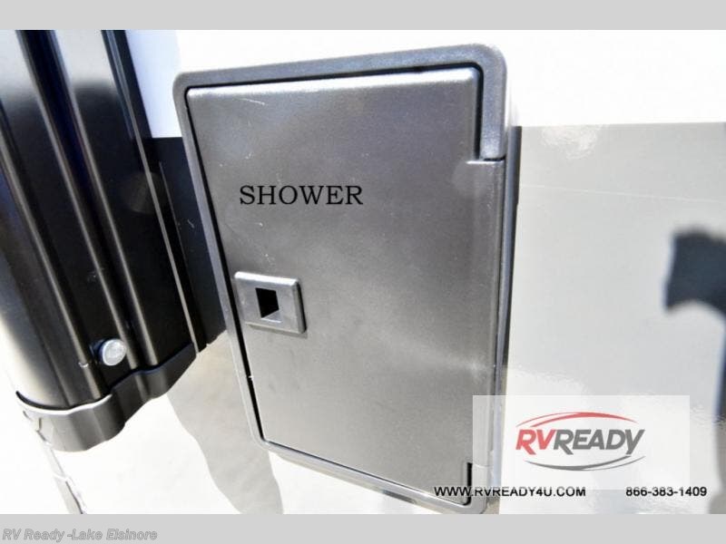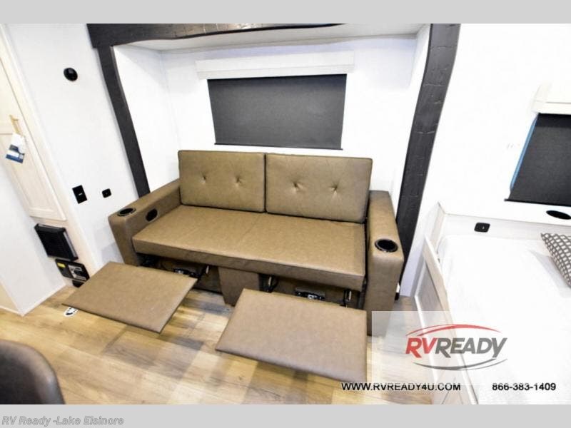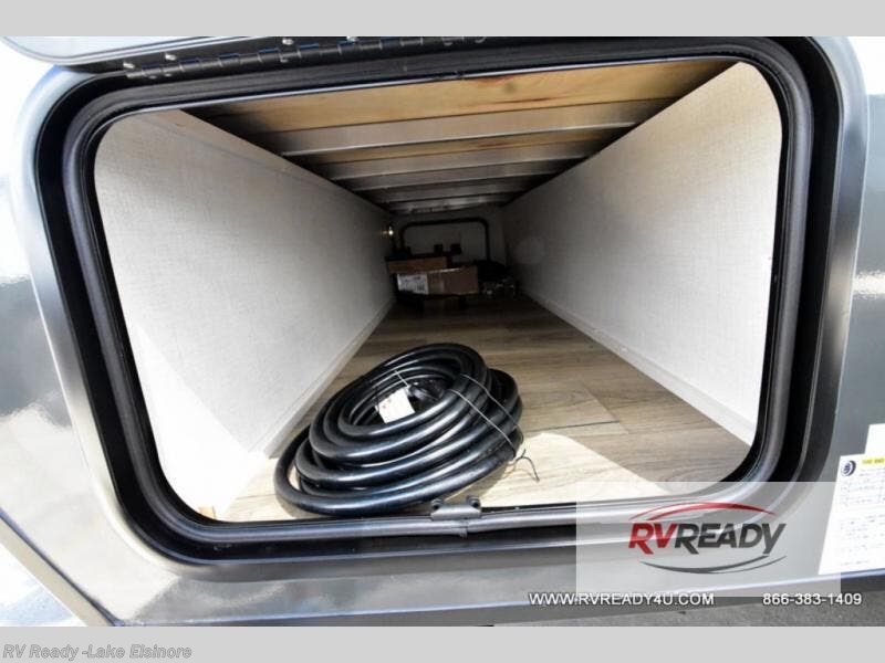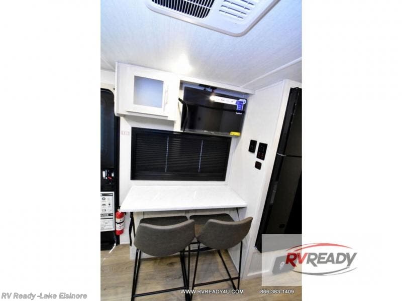 This travel trailer makes time at the campground easier than ever. Once you arrive at your site, you can put out the 14' awning, unload the exterior storage, then stretch your legs on a trail. The rear corner kitchen will let you make lunch when you return, and there is a bar top with two chairs where you can dine at. The jackknife sofa with leg rests is within a slide out so you can enjoy more floor space, and the front queen bed is sure to make you feel right at home.
