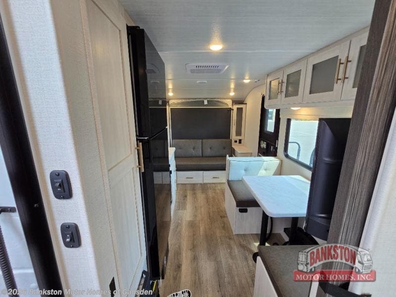 You're going to love all of the conveniences and versatility of this travel trailer! The front Murphy bed can fold away to reveal a sofa which gives you a comfortable place to sit during the day and to sleep at night too. The rear full bath features everything you will need to get squeaky clean each morning, as well as a large wardrobe for you to store your linens. After you have whipped up your best meal with the two-burner cooktop or convection microwave, you can head to the booth dinette and enjoy eating it there comfortably.