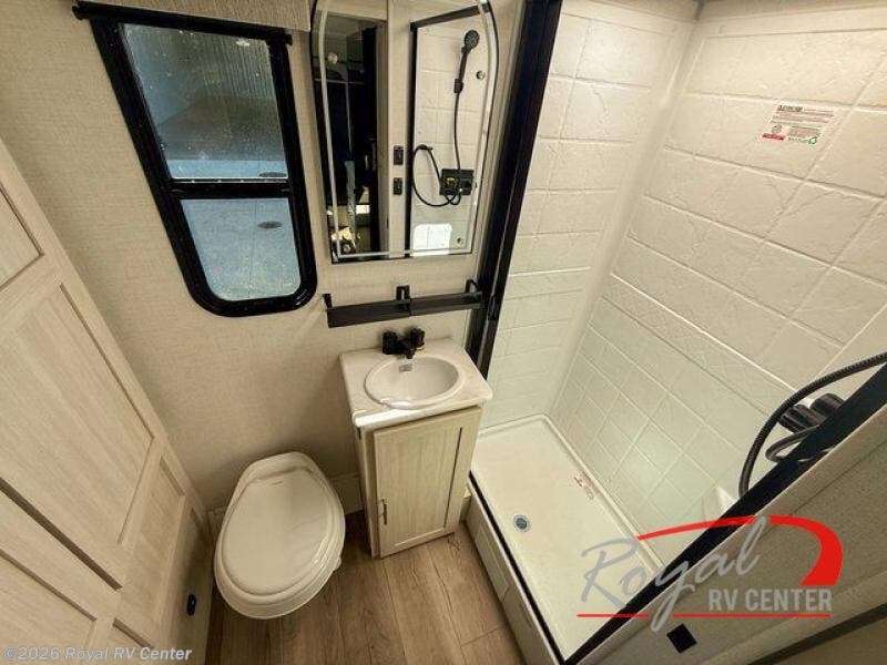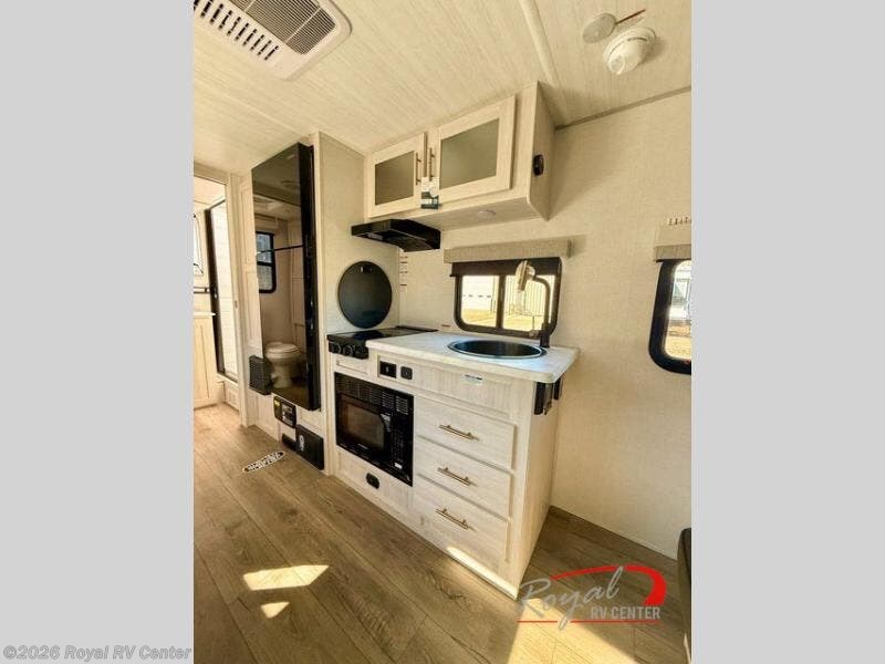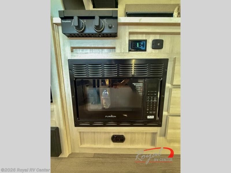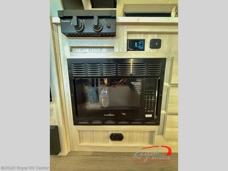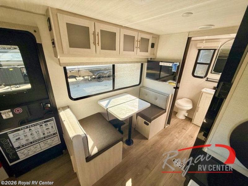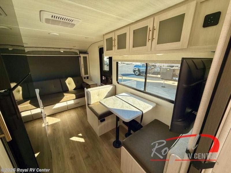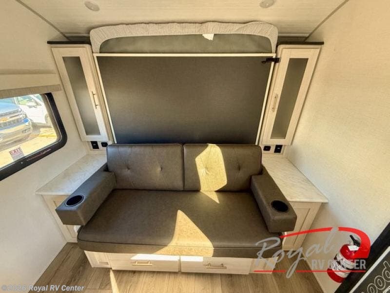 You're going to love all of the conveniences and versatility of this travel trailer! The front Murphy bed can fold away to reveal a sofa which gives you a comfortable place to sit during the day and to sleep at night too. The rear full bath features everything you will need to get squeaky clean each morning, as well as a large wardrobe for you to store your linens. After you have whipped up your best meal with the two-burner cooktop or convection microwave, you can head to the booth dinette and enjoy eating it there comfortably.