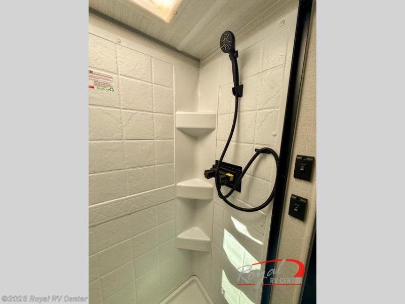 With any R-Pod travel trailer by Forest River, you will enjoy affordable luxury at the lowest tow weight in its class! There is a sealed underbelly with forced heat, a curved dual-pane acrylic front window with a bug screen and night shade, plus a large roof mounted solar panel for off-grid capabilities. The 15K A/C unit will keep you comfortable during the summer camping months, and the tankless water heater will provide endless hot showers after hiking, biking, swimming and more! Each model also includes a black glass friction hinge entrance door, roof ladder prep, exterior motion lighting, plus a hot and cold exterior spray port to wash off sand from the beach. Inside, you'll enjoy seamless Surf-X kitchen countertops, blackout roller shades, and a central vacuum system for hassle-free cleaning!