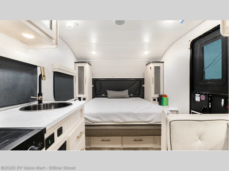 You're going to love all of the conveniences and versatility of this travel trailer! The front Murphy bed can fold away to reveal a sofa which gives you a comfortable place to sit during the day and to sleep at night too. The rear full bath features everything you will need to get squeaky clean each morning, as well as a large wardrobe for you to store your linens. After you have whipped up your best meal with the two-burner cooktop or an airy fryer microwave, you can head to the booth dinette and enjoy eating it there comfortably.