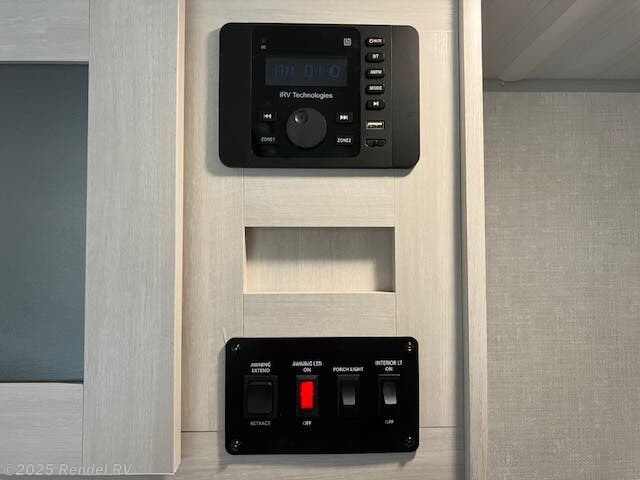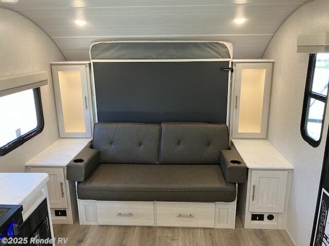 The R-Pod RP-197 features a unique Murphy Queen Bed that converts from a plush couch during the day into a spacious sleeping area at night. Enjoy the abundant floor space without the extra weight of a slide-out. The 12-foot power awning is outfitted with an LED light strip, providing the perfect outdoor space for evening relaxation.