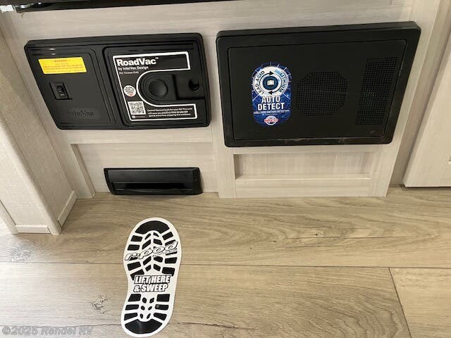 Your safety and comfort are of utmost importance. The R-Pod comes equipped with a **CO Detector**, **Fire Extinguisher**, **LP Detector**, and **Smoke Detector**, ensuring peace of mind while traveling. With a central vacuum system and ample storage solutions, keeping your RV clean and tidy is easier than ever.