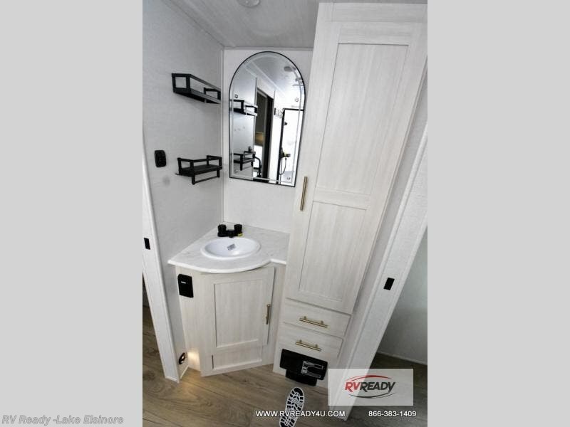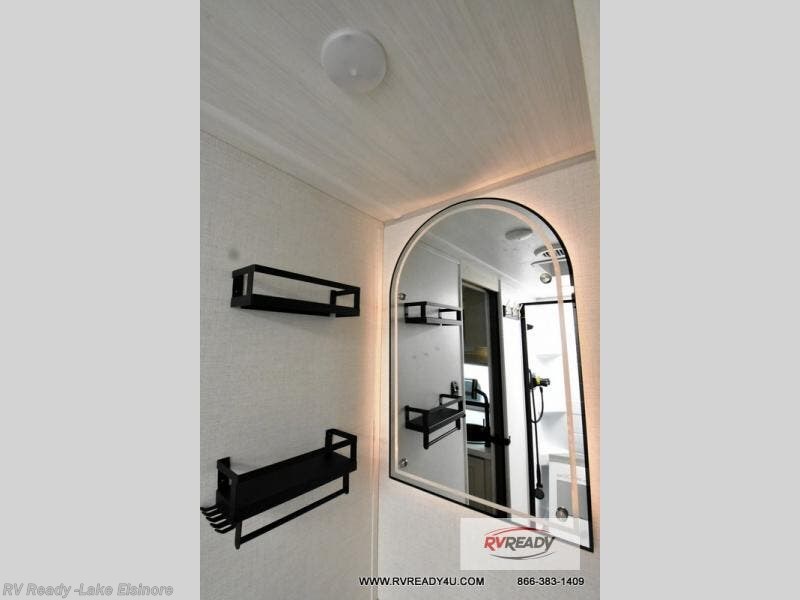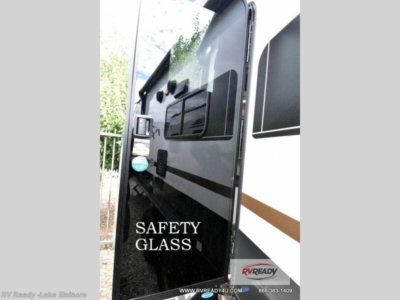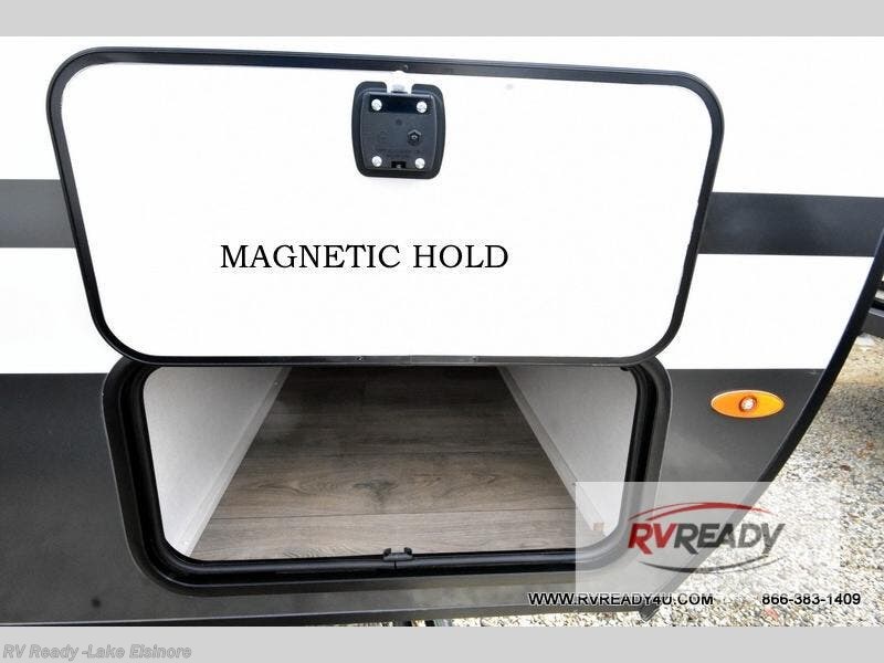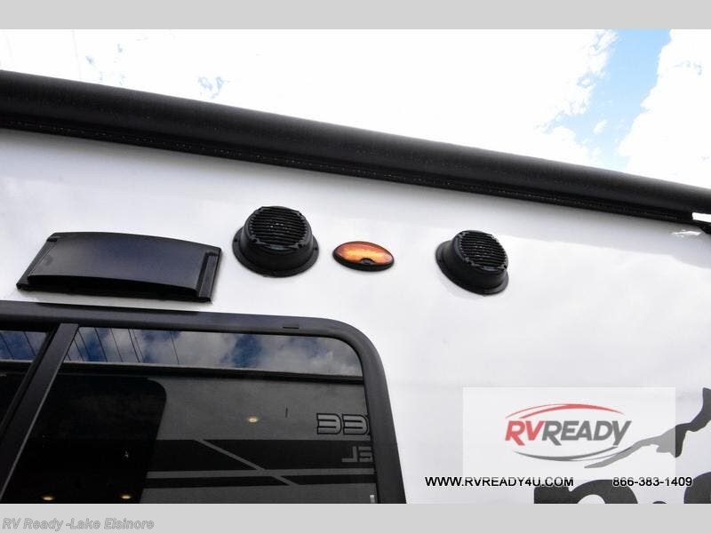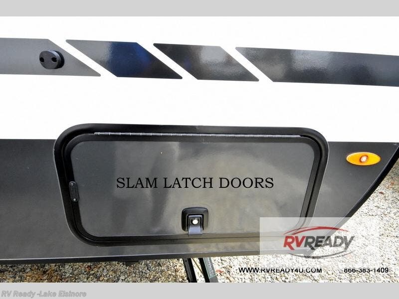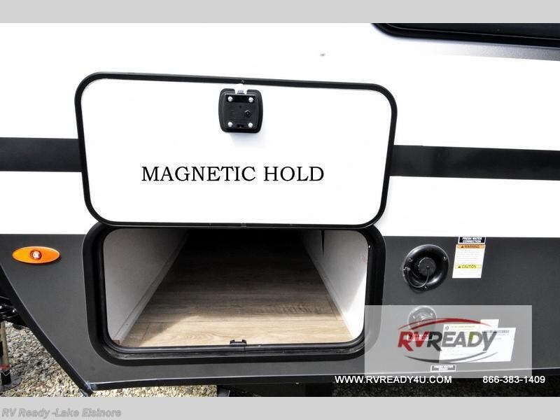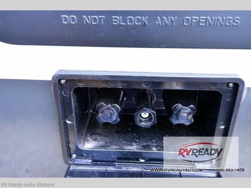 Whether you spend your days at the lake or in the woods, you'll be met with comfort in this spacious travel trailer. There is a rear dinette where you can enjoy your meals together, a 56" theater seat across from a 12V TV, and a slide out for added space. The walk-through bath includes a night light for easy nighttime use, and the front master bedroom includes a queen bed just like at home. There are also dual wardrobes and end tables plus an entertainment center if you want to add a TV. Outside, you'll find a rear accessory hitch, upgraded tires with TPMS, a 14' awning, and a slam latch cargo doors to keep your gear secure.
