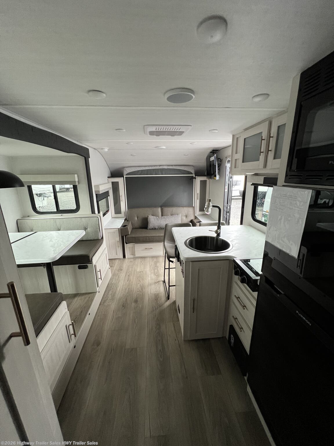 Bunk Beds, Dinette, Kitchen Sink, Medicine Cabinet, Murphy Bed, Queen Bed, Shower, Toilet -