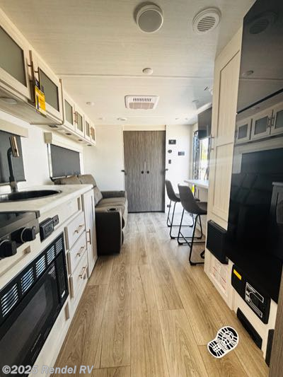 This innovative travel trailer provides a cozy and functional interior, perfect for relaxing and entertaining while on the road. Although specific interior features such as refrigerator capacity or water capacity are not listed, modern RV amenities are expected for this model, ensuring a comfortable stay wherever your travels take you.