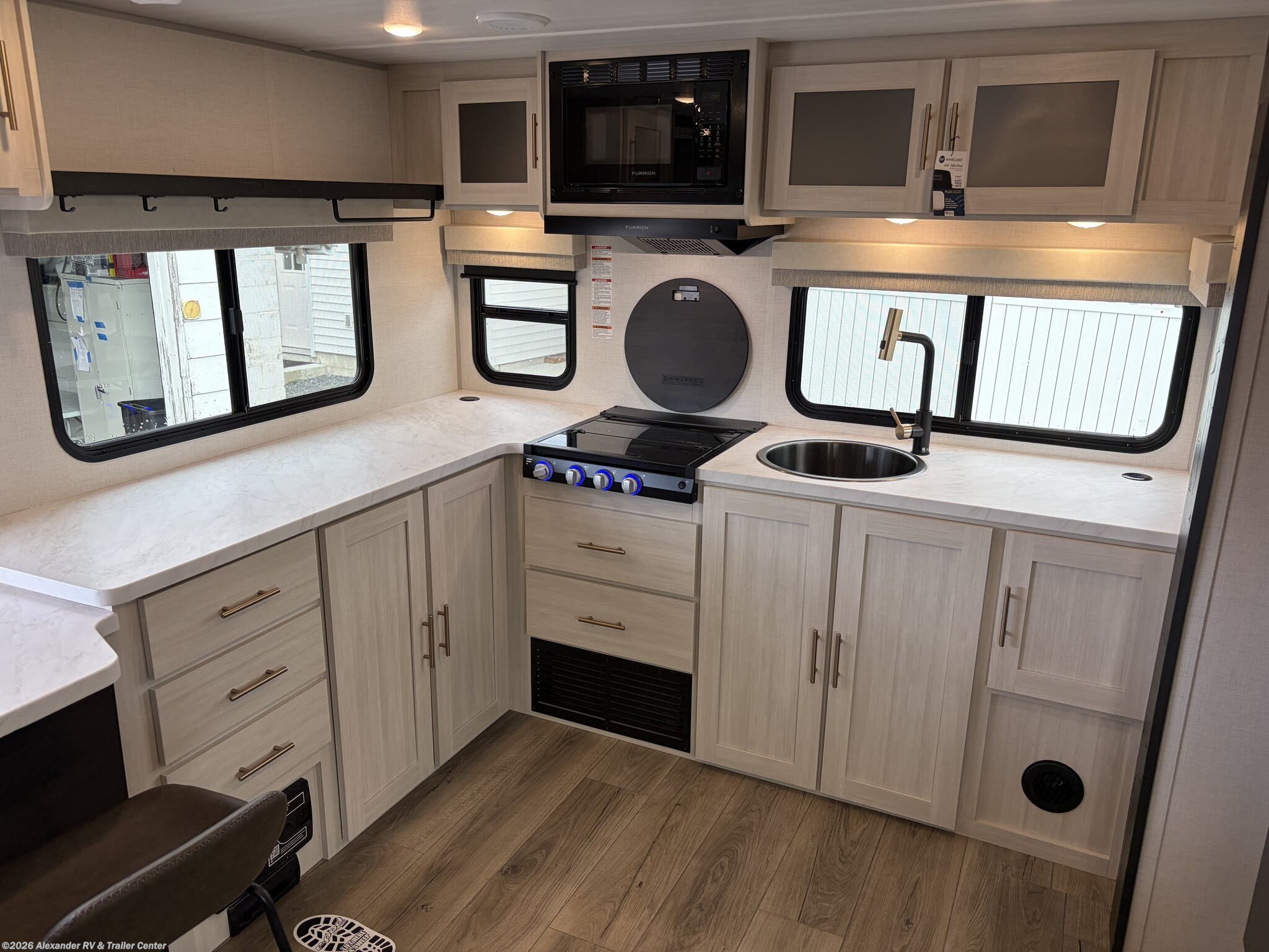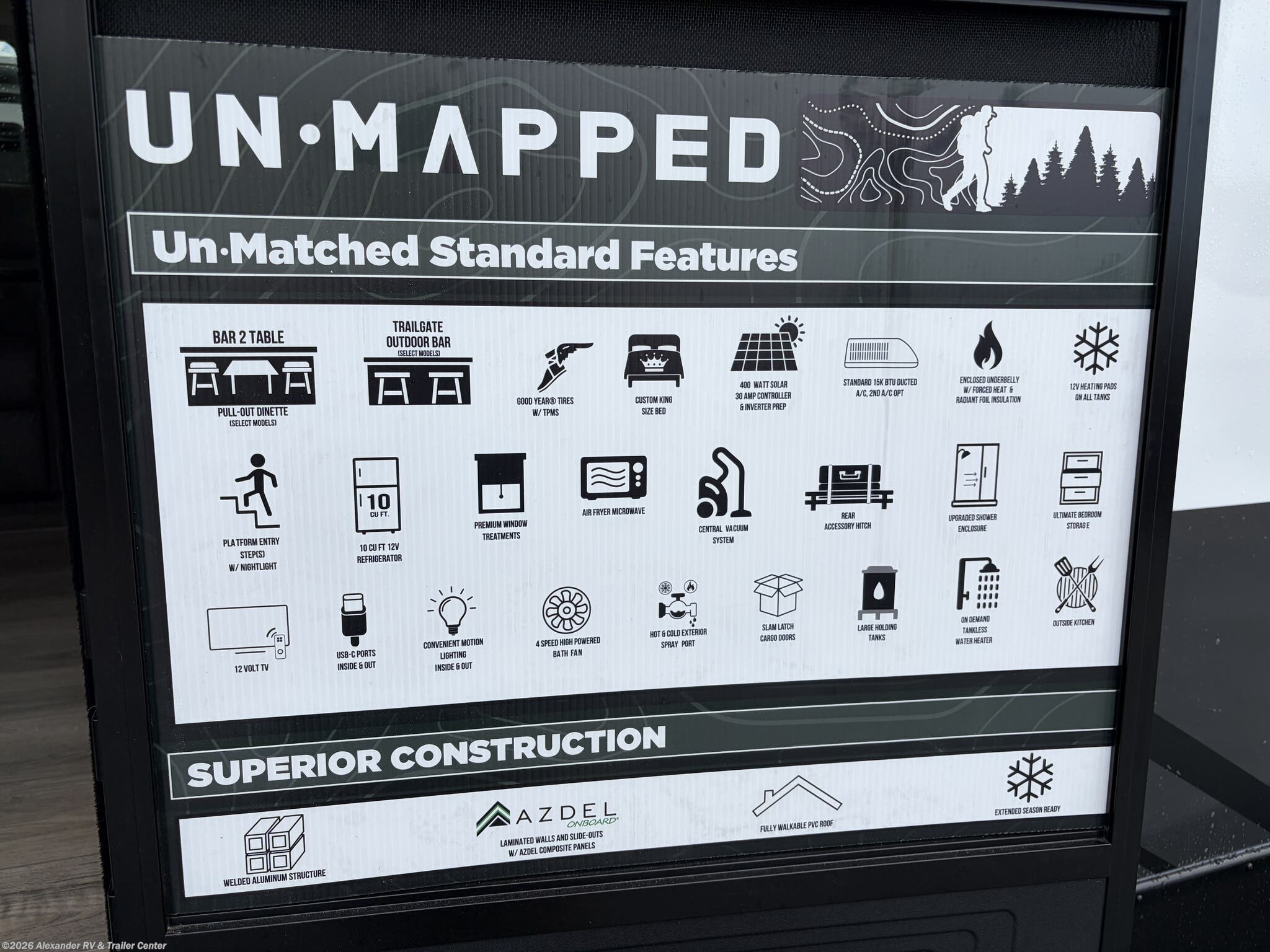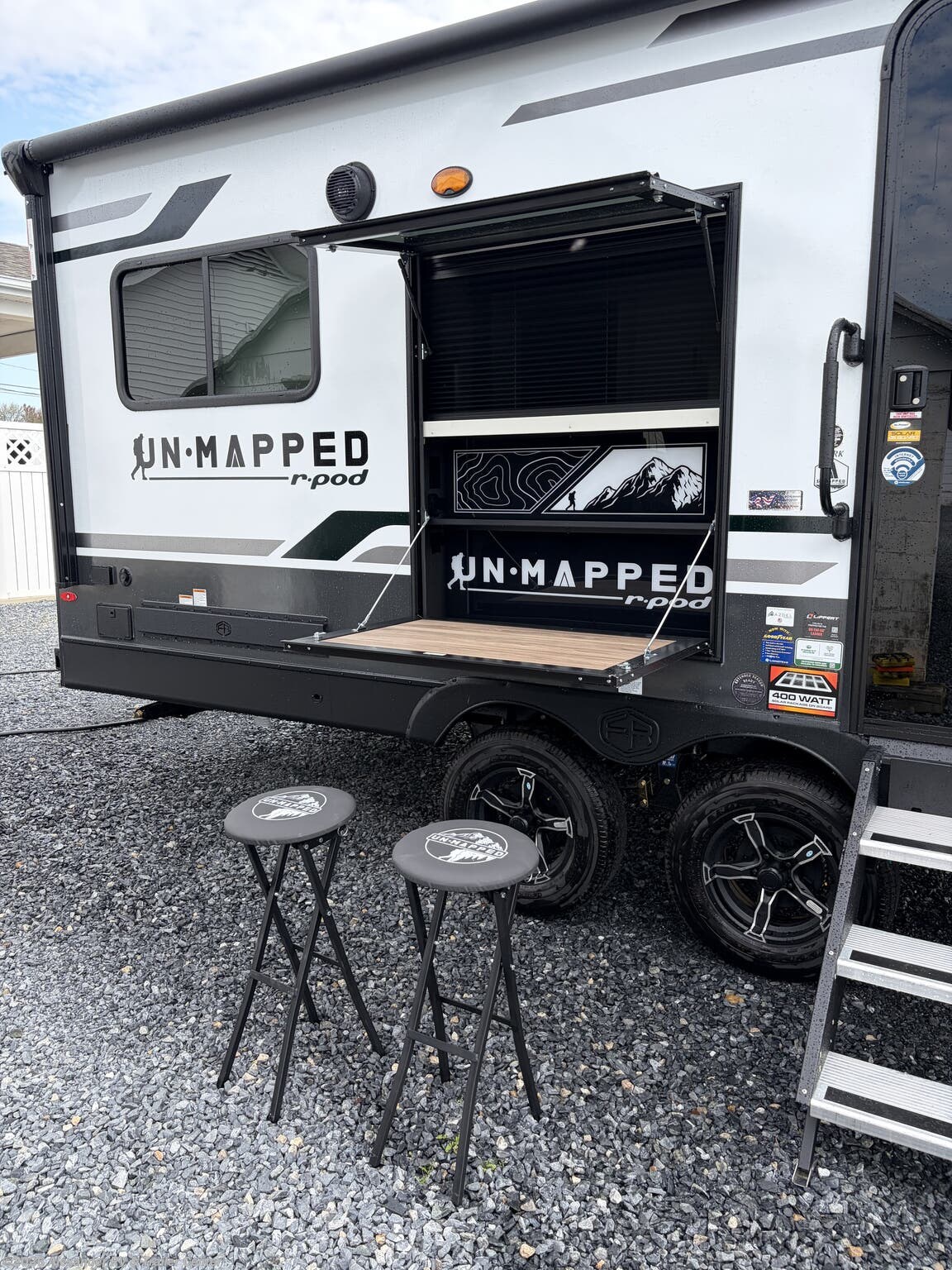 This 2026 Forest River R-Pod Un-Mapped 24RK is an RV everyone will love. By owning this 2026 Forest River R-Pod Un-Mapped 24RK, you’re joining the Forest River family! If you’re looking for a couples RV, you’ve found it: this rig sleeps 2. Setup is a breeze thanks to one roomy slide. It doesn’t matter whether you are cooking for one or an entire campground, this kitchen has everything you need with the fridge, stove. Spend time together in the living area with the theater seating and , or TV. The king size bed makes it a perfect camper for couples. The heating option will keep your travels at the perfect temperature. If you’re thinking of heading off grid, this rig has a 40 fresh water tank. The exterior features make camping a breeze, such as alloy wheels, aluminum entrance steps, black tank flush, detachable power cord, diamond shield paint protection film, enclosed underbelly, exterior speakers, external shower, fiberglass sidewalls, front fiberglass cap w/window, heated underbelly, outside entertainment center, outside kitchen, pass thru storage, power awning, power hitch jack, power roof vent, roof vent, screen door, skylight, slam latch baggage doors, slideout, spare tire kit, stabilizer jacks and upgraded insulation package. Make sure kids don’t track mud inside with the outside shower. The outside kitchen keeps your rig from overheating at meal time. Pass-through storage allows for easy access to all your gear.