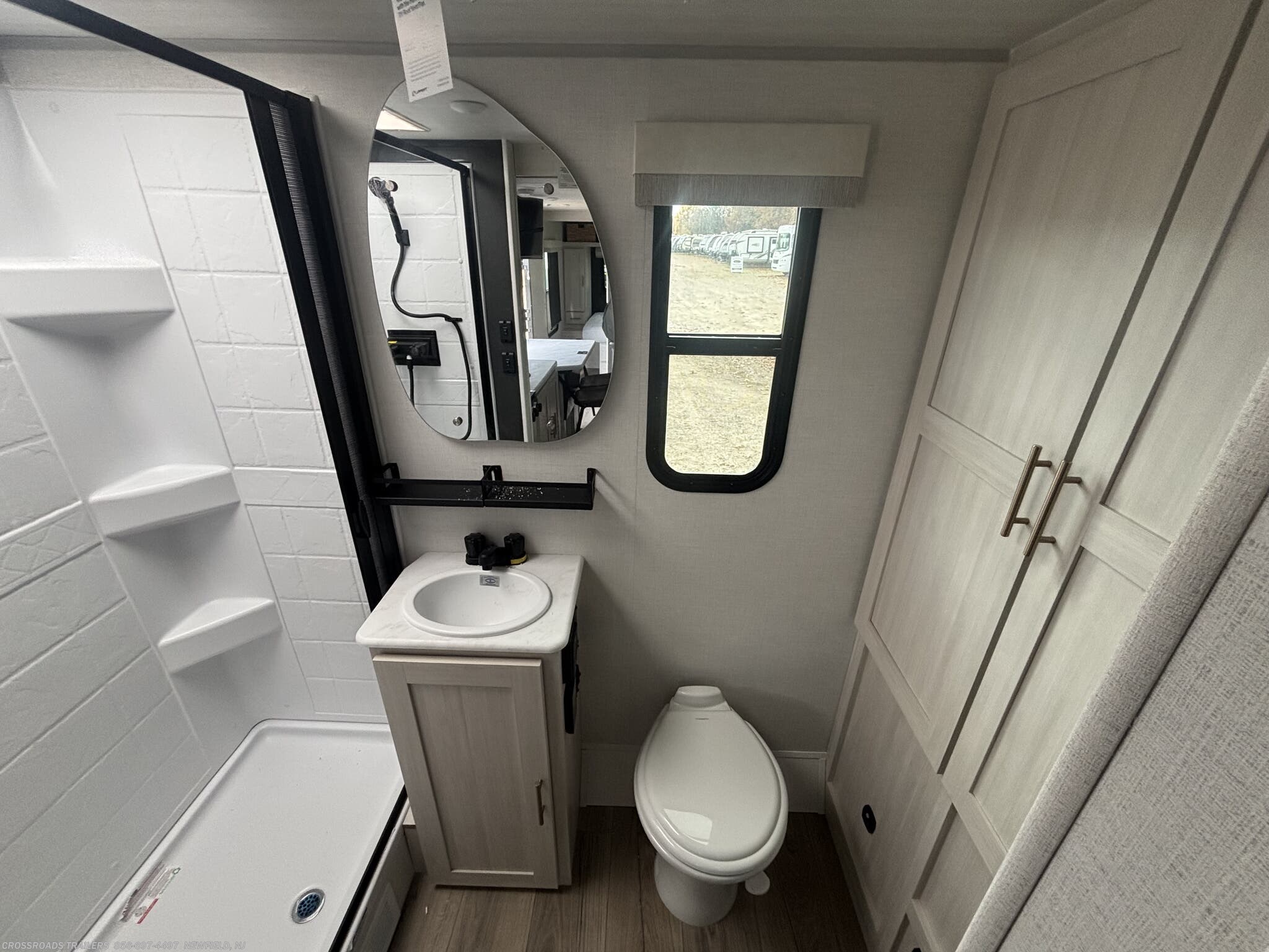 Key specifications and standout details help you compare confidently with other RVs. The 26ML floorplan includes front bedroom, mid kitchen, mid living area, and rear bath. It features one slide-out, 1 air conditioner, and a total length of 28 feet 11 inches, width 8 feet, and height 10 feet 8 inches. Power and storage are reinforced by the installed inverter, ample storage closets, and slam-latch baggage doors. In stock and listed as a new arrival, this travel trailer offers strong value for couples seeking reliable, comfortable travel in a compact, maneuverable package.