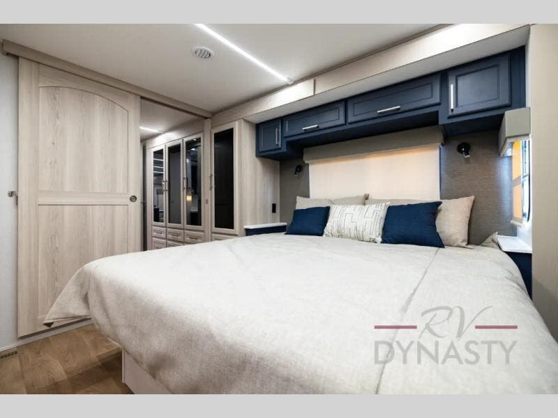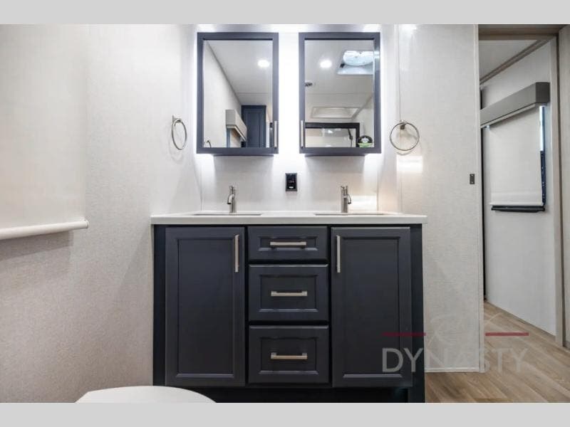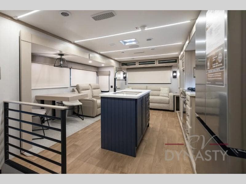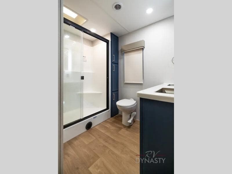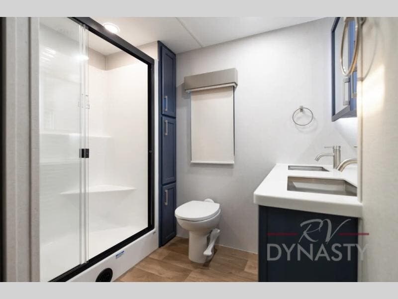 With the River Ranch fifth wheel by Forest River, you will love the practical living, ample storage, the optimum towability, and the lavish style found throughout! There is a 7' interior height and a 101" wide body for added space, plus large, tinted windows throughout, worry-free composite floors, and vacuum bonded walls with Azdel for durability. The mandatory River Package includes features such as an upgraded suspension, a screenless operating system with Bluetooth, and three A/C units to keep you comfortable. These fifth wheels also include the mandatory Ranch Package that comes with a stainless-steel appliance package, day/night roller shades, a fiberglass shower surround, plus residential style dinette chairs. There are many more features to love about the River Ranch fifth wheels, like the upgraded true solid surface countertops, the mirrored sliding closet doors, and the two-tone painted front cap!