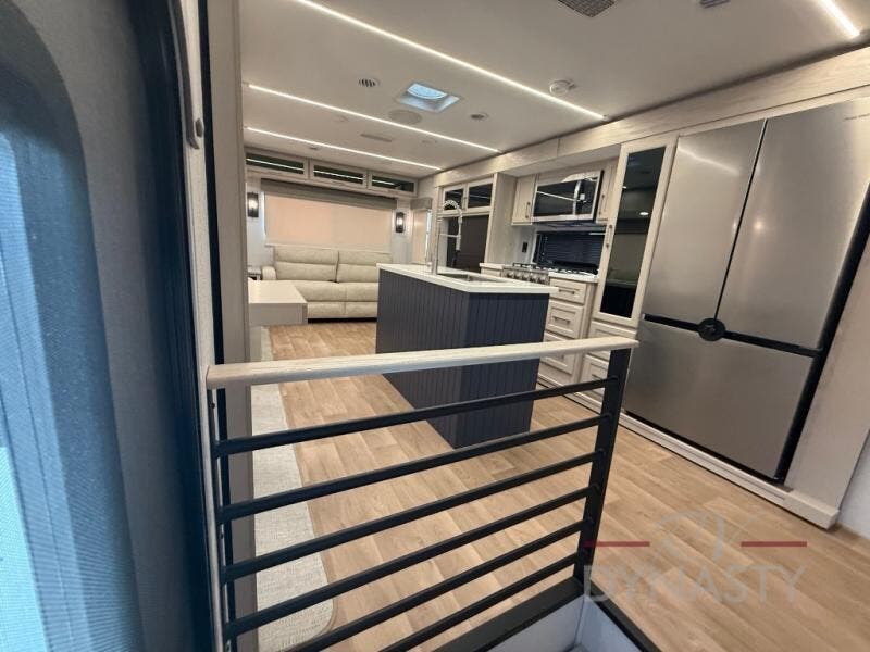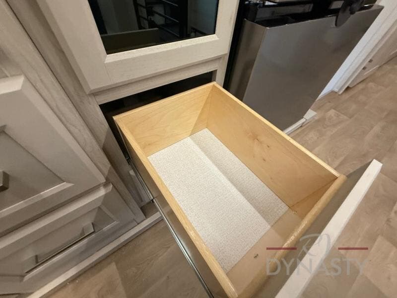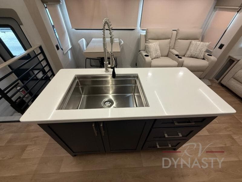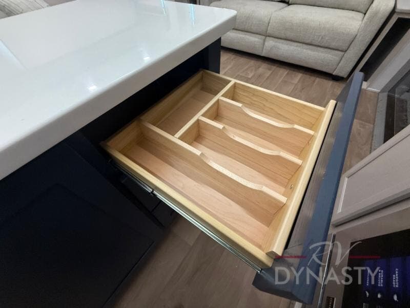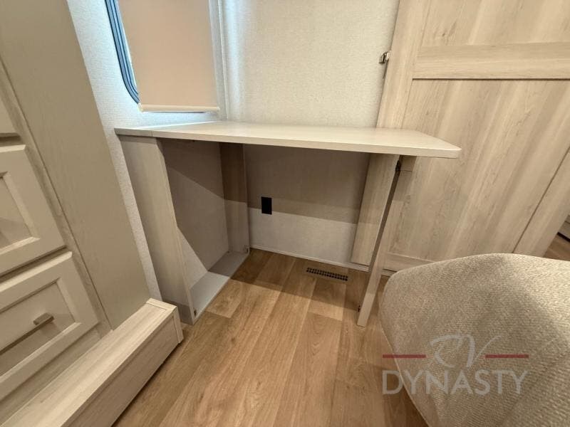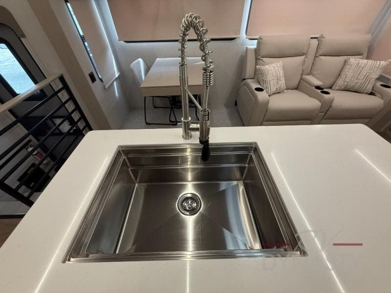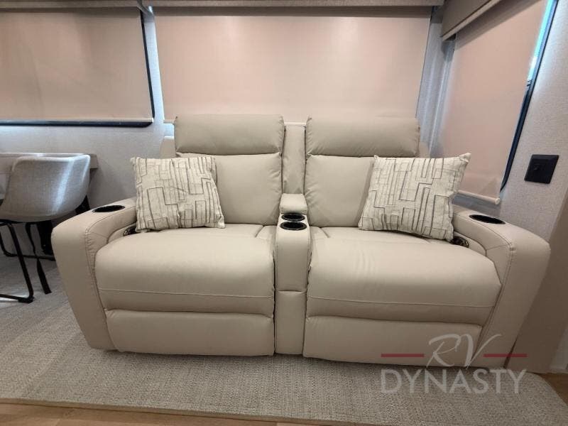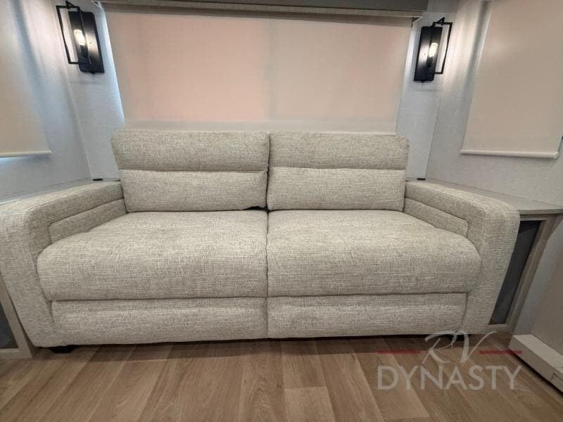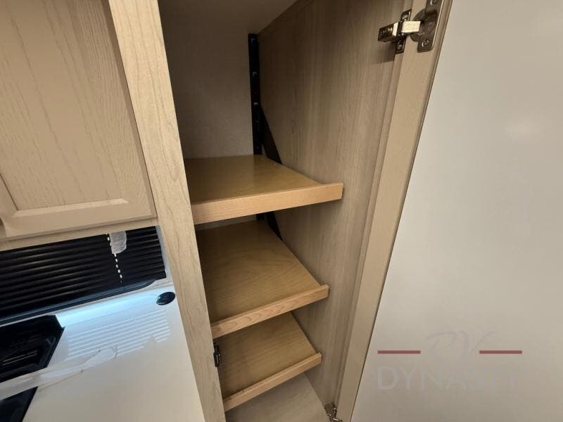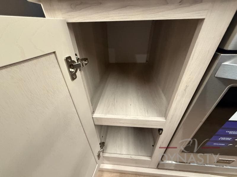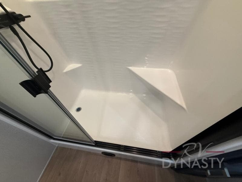 WALL MOUNTED FREE STANDING DINETTE TABLE W/DRAWER,(2) RESIDENTIAL DINETTE CHAIRS, (2) FOLDING CHAIRS, UPGRADED RESIDENTIAL HARDWARE W/ CABINETS & SOFT CLOSE DOORS & DRAWERS, LARGE KITCHEN PANTRY(SELECT MODELS), KITCHEN MAXX AIR VENT, DEEP BOWL STAINLESS STEEL KITCHEN SINK W/ACCESSORIES, STAINLESS STEEL APPLIANCE PKG INCLUDING 18 CU FT 12V REFER, 1.7 CU FT MICROWAVE, RESIDENTIAL STYLE 24" RANGE, 50" SMART TV W/BLUETOOTH AUDIO, DAY/NIGHT PRIVACY ROLLER SHADES IN MAIN AREAS, WOVEN FLOORING, POWER THEATER SEATING W/USB, TRI-FOLD SLEEPER SOFA, 5K BTU ELECTRIC FIREPLACE IN LIVING ROOM & BEDROOM (SELECT MODELS), ALUMINUM BED BASE W/KING BED, BEDROOM TV, WASHER/DRYER PREP, PORCELAIN TOILET, 48X30 ONE PIECE FIBERGLASS SHOWER SURROUND, UNDERMOUNT BATH SINK W/SOLID SURFACE COUNTERTOP, POP-UP RECEPTS