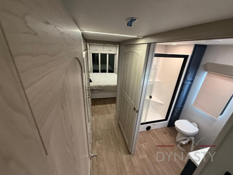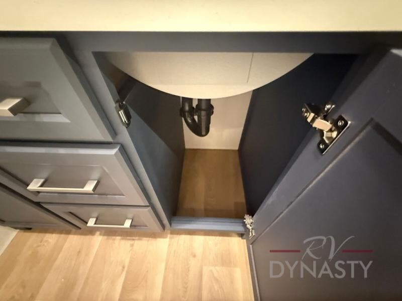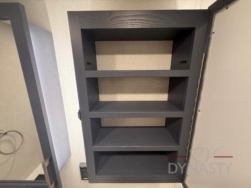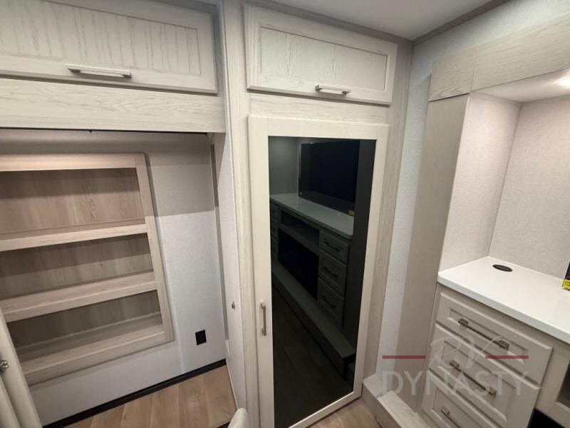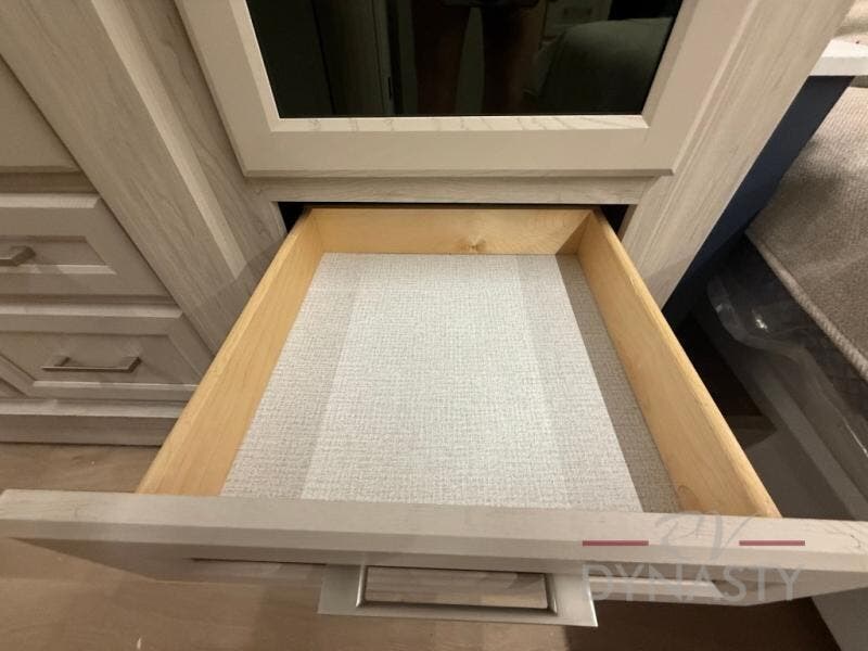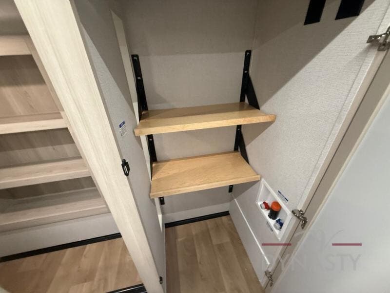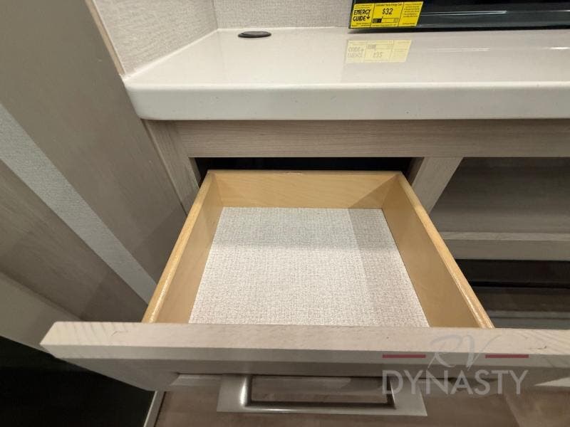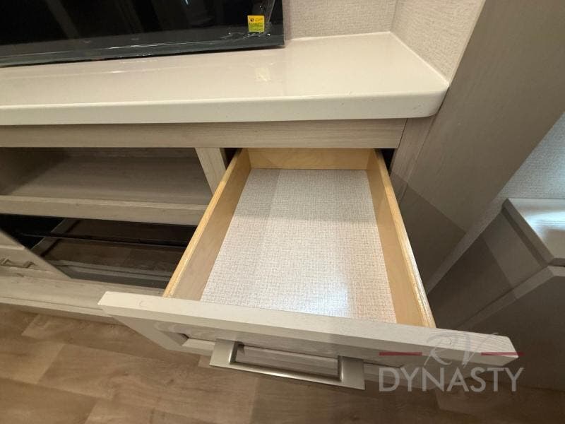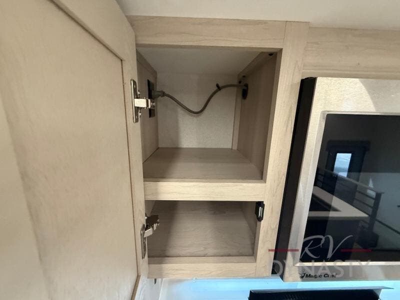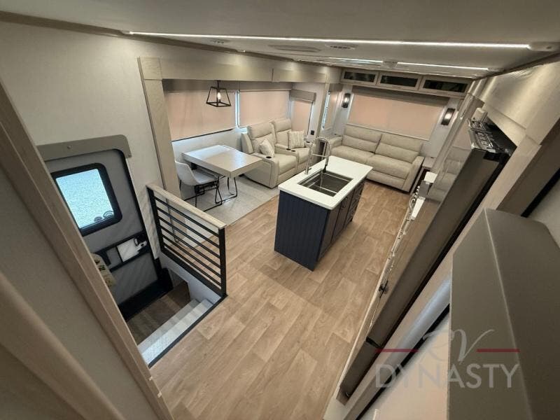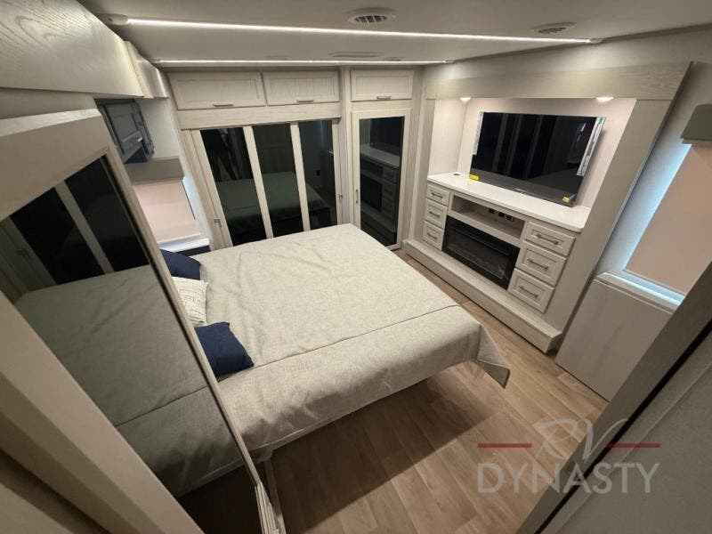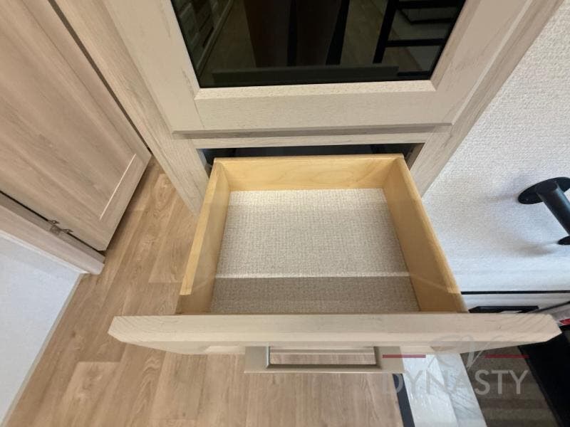 WALL MOUNTED FREE STANDING DINETTE TABLE W/DRAWER,(2) RESIDENTIAL DINETTE CHAIRS, (2) FOLDING CHAIRS, UPGRADED RESIDENTIAL HARDWARE W/ CABINETS & SOFT CLOSE DOORS & DRAWERS, LARGE KITCHEN PANTRY(SELECT MODELS), KITCHEN MAXX AIR VENT, DEEP BOWL STAINLESS STEEL KITCHEN SINK W/ACCESSORIES, STAINLESS STEEL APPLIANCE PKG INCLUDING 18 CU FT 12V REFER, 1.7 CU FT MICROWAVE, RESIDENTIAL STYLE 24" RANGE, 50" SMART TV W/BLUETOOTH AUDIO, DAY/NIGHT PRIVACY ROLLER SHADES IN MAIN AREAS, WOVEN FLOORING, POWER THEATER SEATING W/USB, TRI-FOLD SLEEPER SOFA, 5K BTU ELECTRIC FIREPLACE IN LIVING ROOM & BEDROOM (SELECT MODELS), ALUMINUM BED BASE W/KING BED, BEDROOM TV, WASHER/DRYER PREP, PORCELAIN TOILET, 48X30 ONE PIECE FIBERGLASS SHOWER SURROUND, UNDERMOUNT BATH SINK W/SOLID SURFACE COUNTERTOP, POP-UP RECEPTS