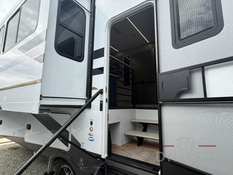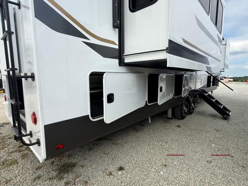 6 PT HYDRAULIC LEVELING SYSTEM, UPGRADED SUSPENSION WITH ABS BRAKE SYSTEM, 8000 LB AXLES, 2-TONE ALUM WHEELS, J-RATED TIRES W/SPARE, HEAT PUMP ON 15K BTU MAIN A/C, UPGRADED PINBOX, 12 GAL WATER HEATER, (3) 15,000 BTU A/C'S, POWER CORD STORAGE REEL, 2" TOW HITCH W/4 PIN, TIRE PRESSURE MONITORING SYSTEM, FRAMED WINDOWS, BATTERY DISCONNECT, 12V HEAT PADS ON TANKS, LED AWNING, ADVANCED SOLID STEPS, SYPHON 360 VENT COVERS, FRICTION HINGE ENTRY DOOR, WIFI BOOSTER W/4G LTE CAPABILITY PREP, LADDER, LP QUICK CONNECT, BACK UP CAMERA PREP, SLIDE TOPPER, 260W SOLAR PANEL &30AMP CONTROLLER W/1800W INVERTER & DEDICATED RECEPTS, 2ND SOLAR BOOT ON ROOF (PREP) W/ 10GA WIRE RAN BEHIND SOLAR CONTROLLER, COMPOSITE BASEMENT AND SLIDE BOX FLOORS, HIGH GLOSS FIBERGLASS W/DUAL AZDEL ONBOARD, 2-TONE PAINTED FRONT CAP W/HIGH DENSITY SPRAY FOAM INSULATION, SLIDE TRAY