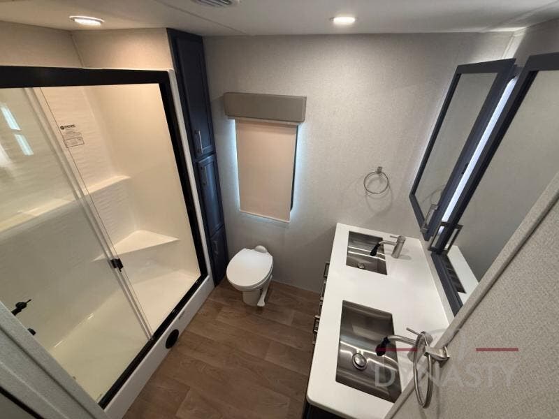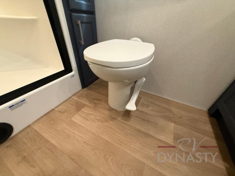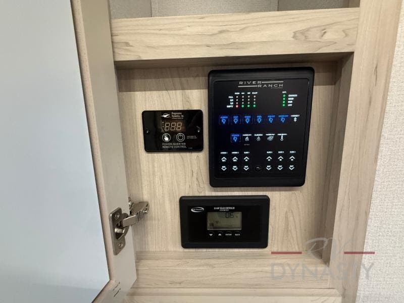 With the River Ranch fifth wheel by Forest River, you will love the practical living, ample storage, the optimum towability, and the lavish style found throughout! There is a 7' interior height and a 101" wide body for added space, plus large, tinted windows throughout, worry-free composite floors, and vacuum bonded walls with Azdel for durability. The mandatory River Package includes features such as an upgraded suspension, a screenless operating system with Bluetooth, and three A/C units to keep you comfortable. These fifth wheels also include the mandatory Ranch Package that comes with a stainless-steel appliance package, day/night roller shades, a fiberglass shower surround, plus residential style dinette chairs. There are many more features to love about the River Ranch fifth wheels, like the upgraded true solid surface countertops, the mirrored sliding closet doors, and the two-tone painted front cap!