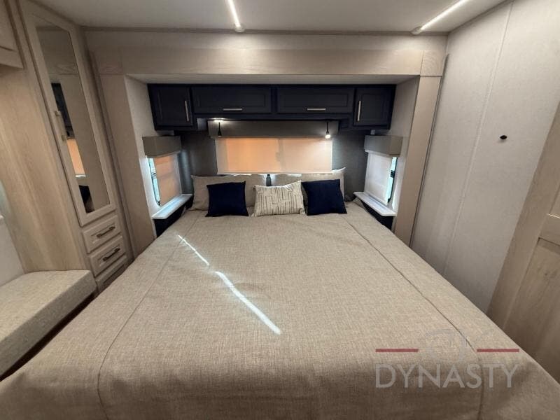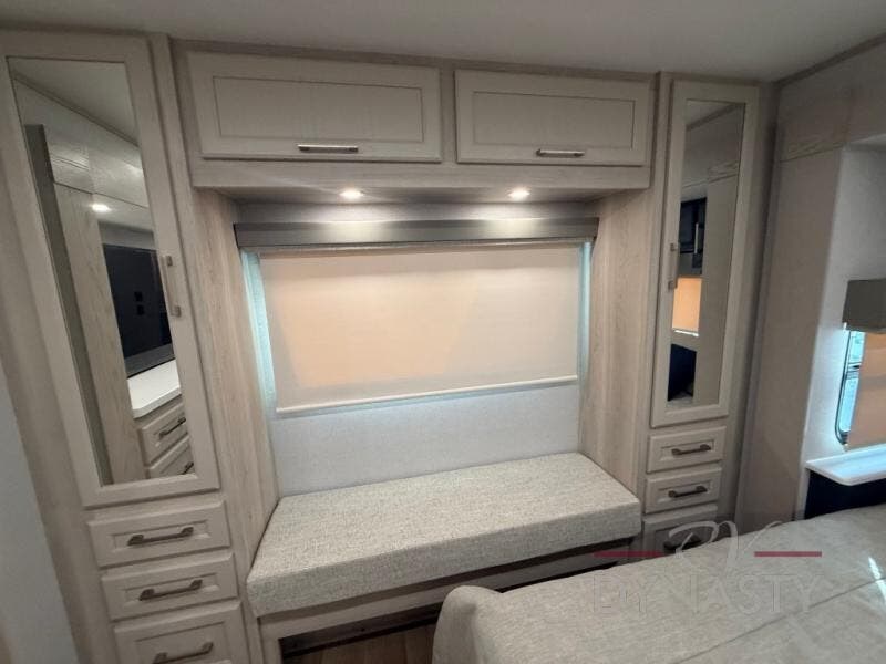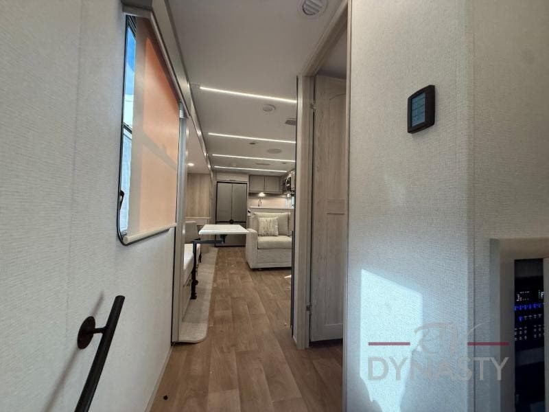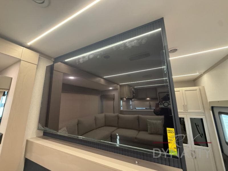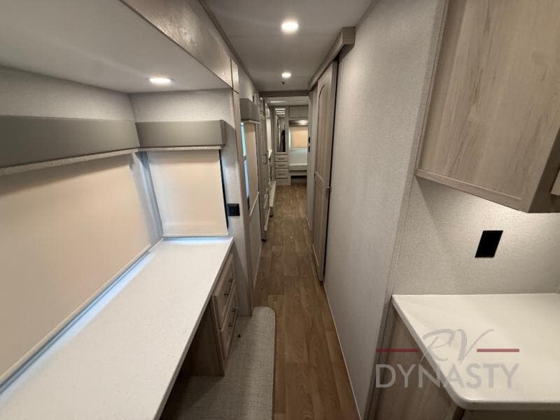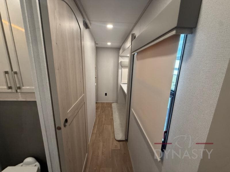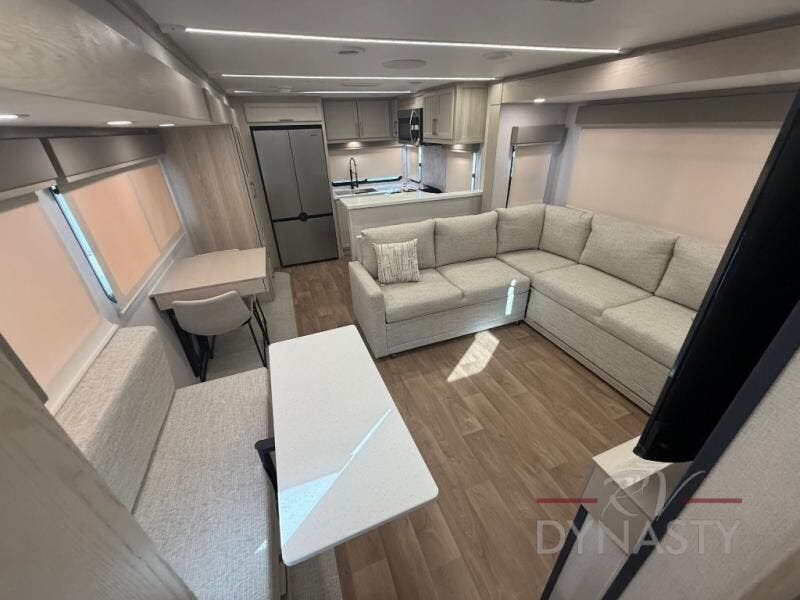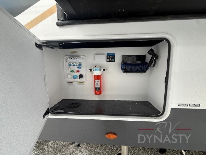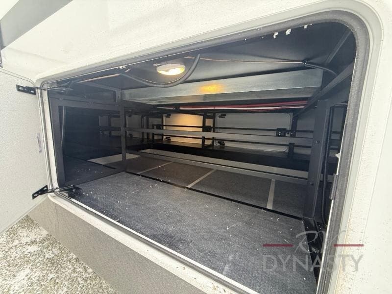 You will love every minute spent in this unique fifth wheel! As you enter the unit, you'll find a mud room with a bench seat, storage, plus washer and dryer prep. The front master bedroom will be your own oasis each day since there is an office space with a desk slide out and a hallway that leads to the front bedroom. Here, you'll find a king bed slide, a front bench, plus a slide out with a TV, fireplace and wardrobe; how convenient! When you've worked up an appetite, the rear kitchen includes everything you need to make home-cooked meals, along with a bar top that overlooks the living room, a spacious pantry, and a table with chairs to dine at. You can spend your evenings relaxing on the L-lounge by the entertainment center with a fireplace, or you can head outdoors to sit under the 19' power awning with LED lights!