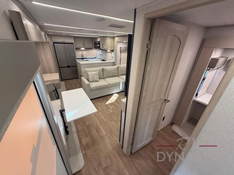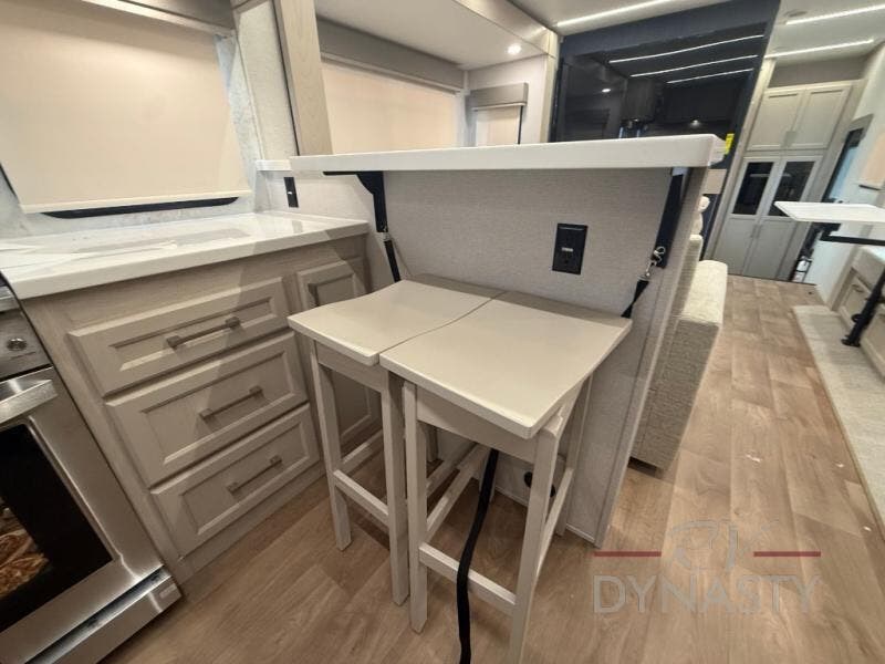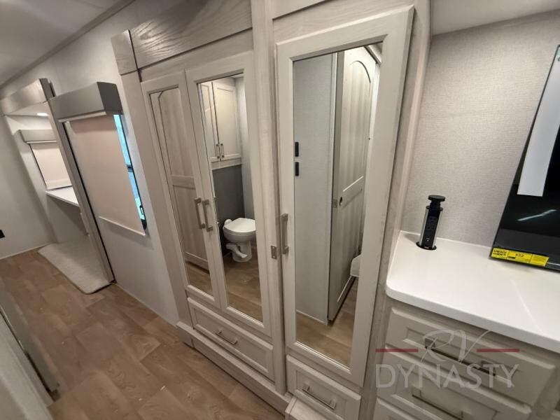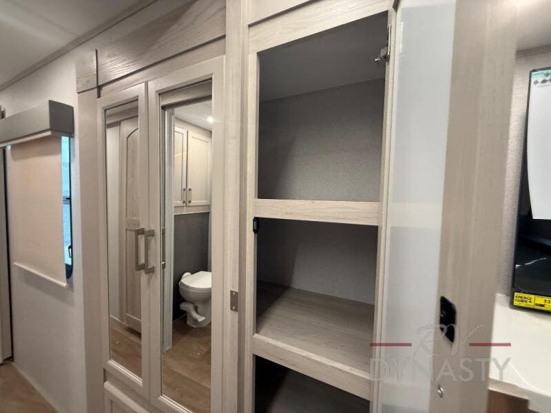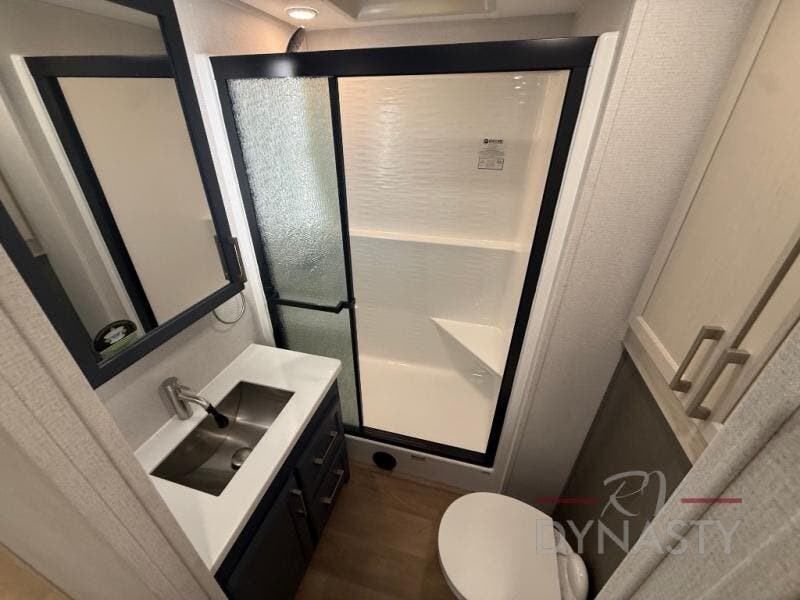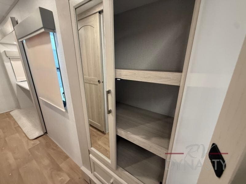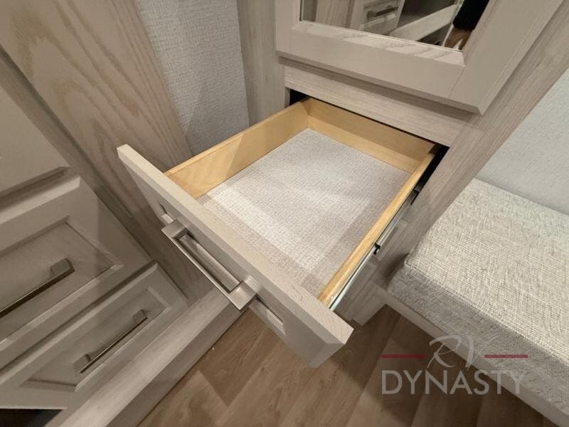 With the River Ranch fifth wheel by Forest River, you will love the practical living, ample storage, the optimum towability, and the lavish style found throughout! There is a 7' interior height and a 101" wide body for added space, plus large, tinted windows throughout, worry-free composite floors, and vacuum bonded walls with Azdel for durability. The mandatory River Package includes features such as an upgraded suspension, a screenless operating system with Bluetooth, and three A/C units to keep you comfortable. These fifth wheels also include the mandatory Ranch Package that comes with a stainless-steel appliance package, day/night roller shades, a fiberglass shower surround, plus residential style dinette chairs. There are many more features to love about the River Ranch fifth wheels, like the upgraded true solid surface countertops, the mirrored sliding closet doors, and the two-tone painted front cap!