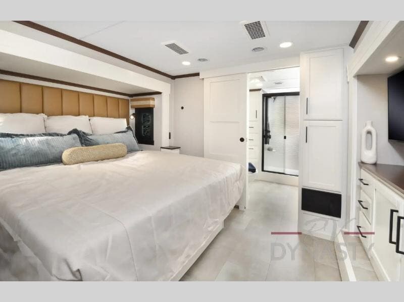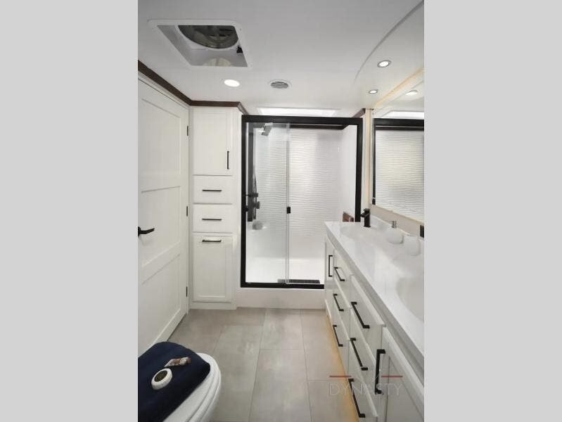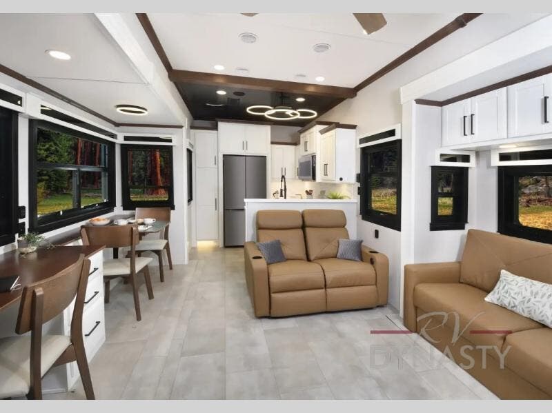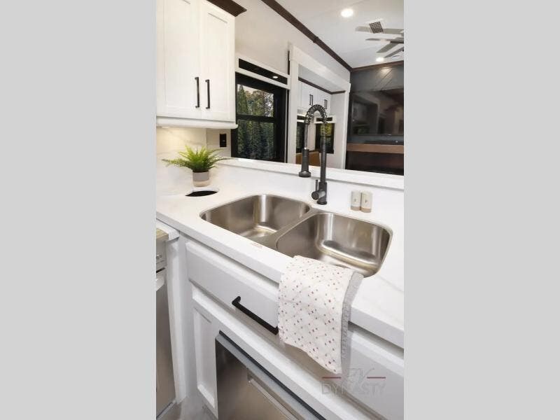 The Forest River RiverStone fifth wheels and toy haulers are luxurious units that have it all! You'll find an automatic six-point hydraulic level-up system to keep your unit in place, and there is preparation for a four-camera observation system. The King Wi-Fi Max router and omni-directional Wi-Fi antenna/extender will help you stay connected to the outside world, and you'll never have to overpack again since the Splendid “Astral” stackable washer and dryer will let you clean the small amount of clothes you've brought with you. Another high luxury is the Fischer Paykal dishwasher which will allow you to spend more time enjoying your camp life and less time cleaning up. Each unit is built with a Trail-Aire Road Armour suspension system, dual-pane frameless windows, a full docking station, a 190W solar panel, and a Firefly integrated touch control system.