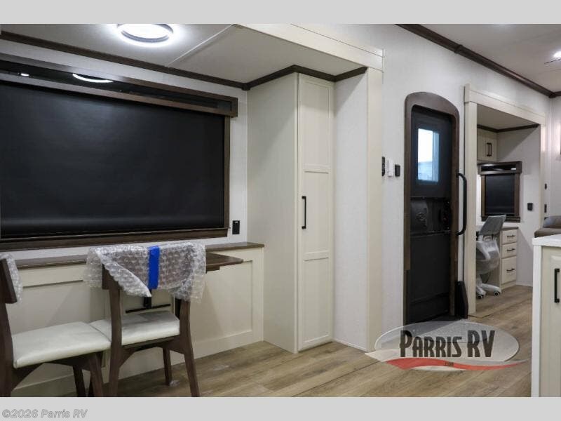 Step into luxury with this fifth wheel, where a high-end design, smart amenities, and functional living combine for an unmatched fifth wheel experience. As you enter you will find yourself in a spacious Kitchen for serious cooking: solid surface countertops, a full 18 cu. ft. french door refrigerator with ice maker, large stainless steel sink and residential-style faucet. Find yourself five slides that will create room for comfortable seating while you cozy up by the fireplace and watch your favorite movie or be as productive as you'd like with the slide out desk space. After a long day of travelling you will surely love to the front bedroom featuring a 72 x 80 king bed to finish your day with a good night's sleep.