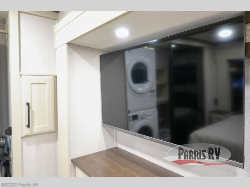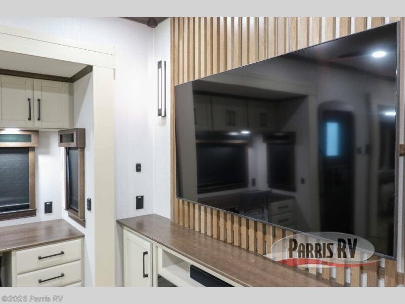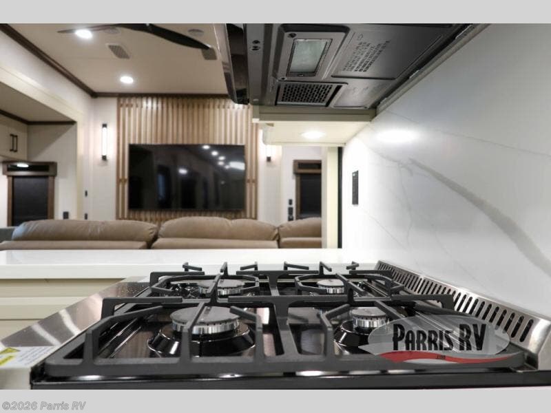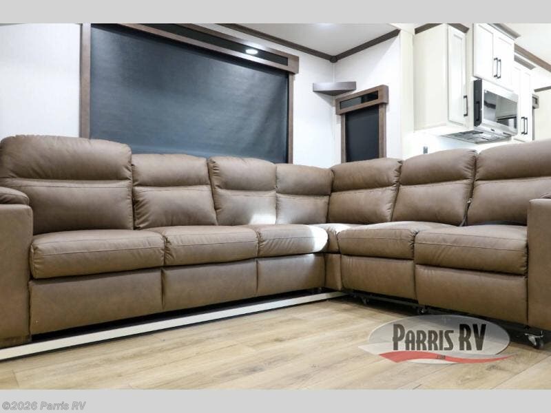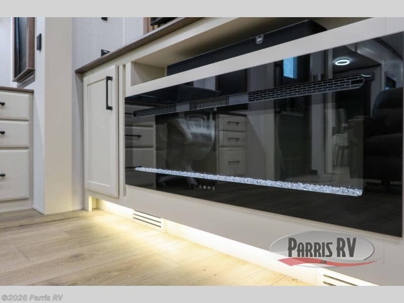 Step into luxury with this fifth wheel, where a high-end design, smart amenities, and functional living combine for an unmatched fifth wheel experience. As you enter you will find yourself in a spacious Kitchen for serious cooking: solid surface countertops, a full 18 cu. ft. french door refrigerator with ice maker, large stainless steel sink and residential-style faucet. Find yourself five slides that will create room for comfortable seating while you cozy up by the fireplace and watch your favorite movie or be as productive as you'd like with the slide out desk space. After a long day of travelling you will surely love to the front bedroom featuring a 72 x 80 king bed to finish your day with a good night's sleep.