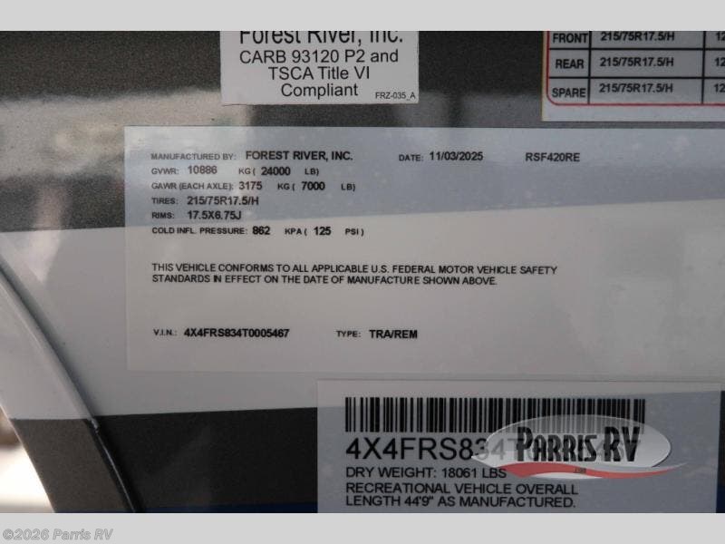 Request More Info on this 2026 Forest River RiverStone 420RE Offered for sale by Parris RV