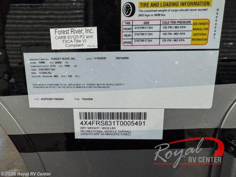 2026 Forest River RiverStone 420RE Specifications