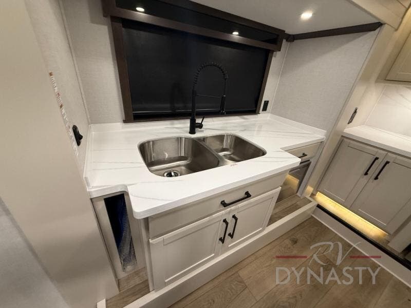 The Forest River RiverStone fifth wheels and toy haulers are luxurious units that have it all! You'll find an automatic six-point hydraulic level-up system to keep your unit in place, and there is preparation for a four-camera observation system. The TravlFi Journey XTR 4G/LTE router and WiFi extender will help you stay connected to the outside world, and you'll never have to overpack again since the Splendid “Astral” stackable washer and dryer will let you clean the small amount of clothes you've brought with you. Another high luxury is the Fischer Paykal dishwasher which will allow you to spend more time enjoying your camp life and less time cleaning up. Each unit is built with a LCI Road Armour suspension system, dual-pane frameless windows, a full docking station, a 200W solar panel, and a BMPro touch control system.