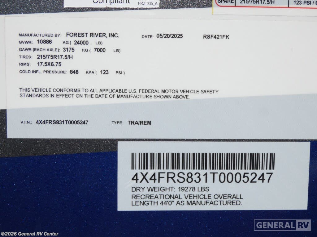 Request More Info on this 2026 Forest River RiverStone 421FK Offered for sale by General RV Center
