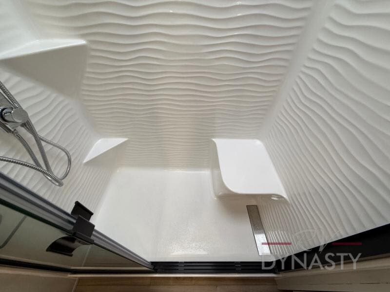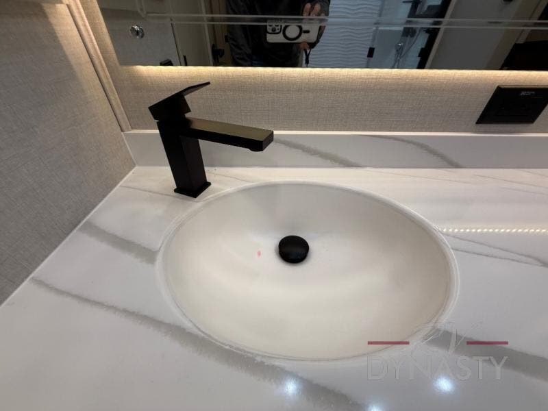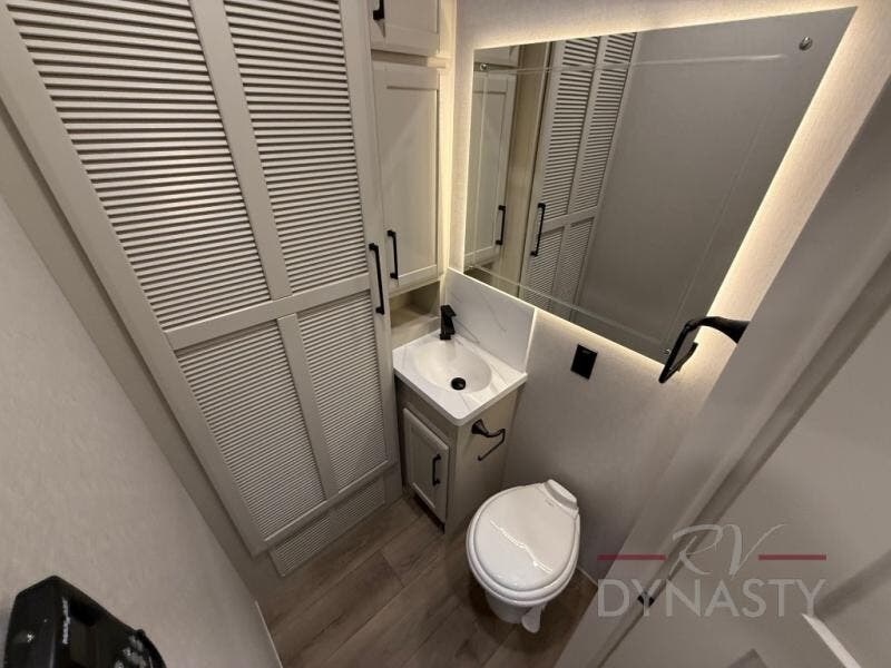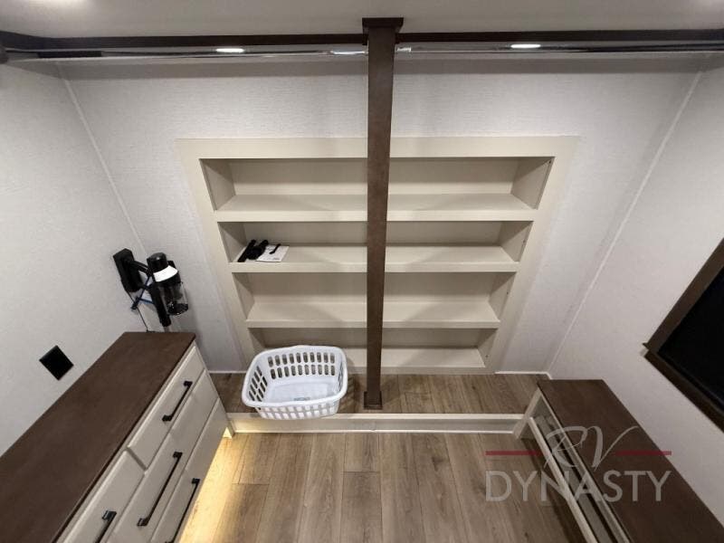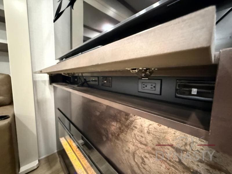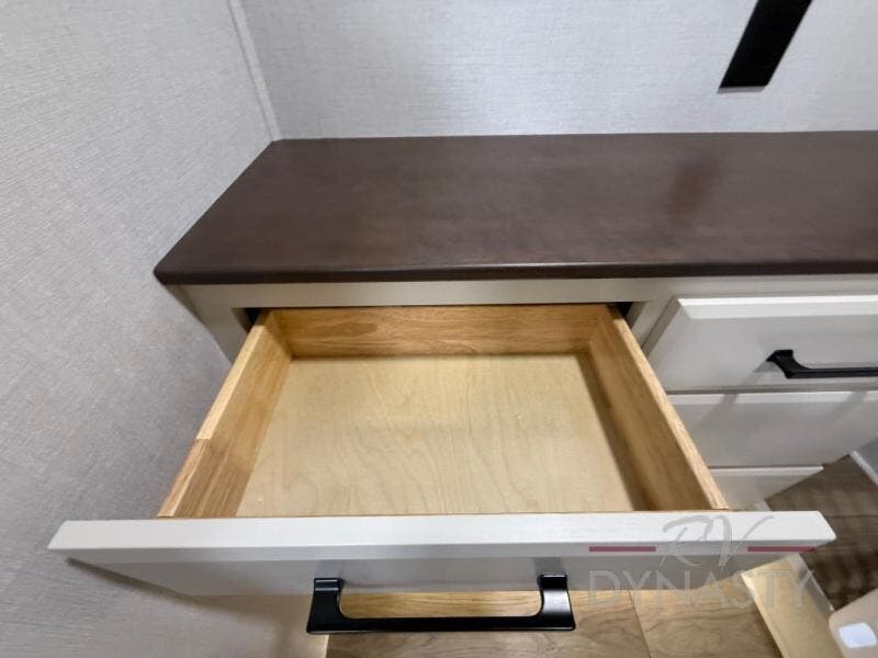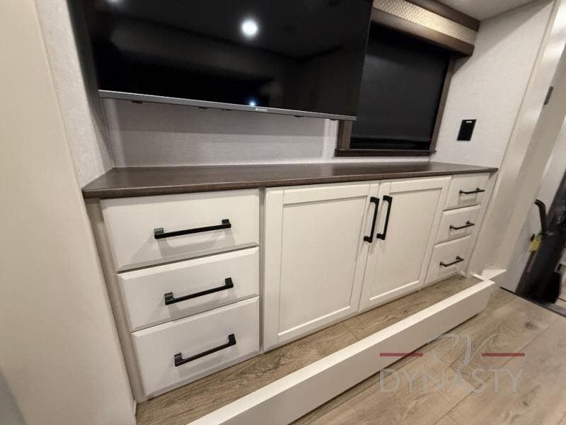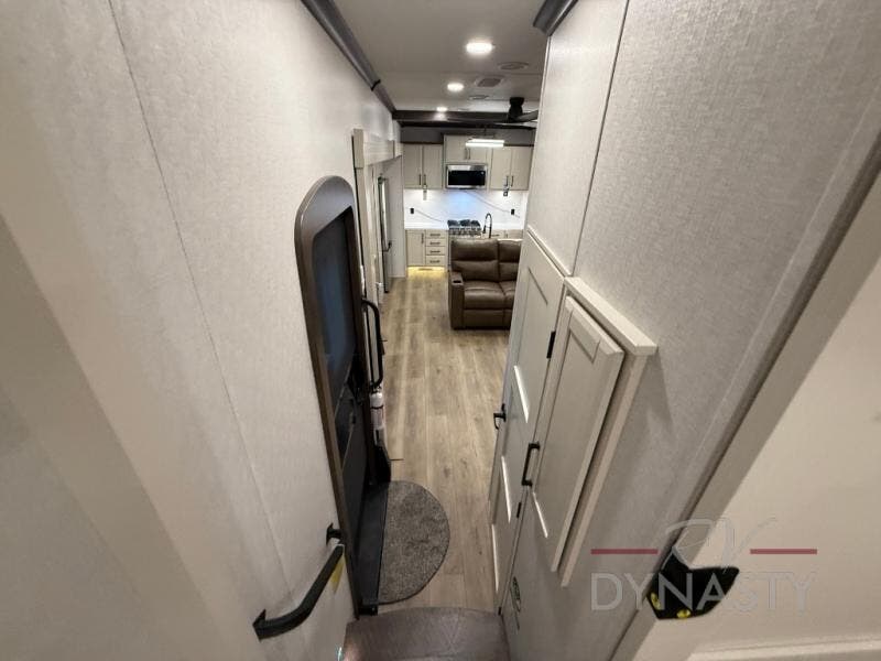 The RiverStone 43BFC isn't just another fifth wheel... it's a residential retreat designed for travelers who want every journey to feel like home. This impressive floor has a designated high-end kitchen space with tons of room, a large pantry, ample counter space and a lovely french door refrigerator will make for unforgettable meals on the go. You can also enjoy a great time with your partner and enjoy all the free time you want at the large sectional sofa you'll never want to leave! After enjoying the living room you will be fascinated by the primary bedroom suite that delivers a quiet, comfortable and spacious sanctuary featuring a dresser and dedicated shoe storage to organize all your personal belongings.