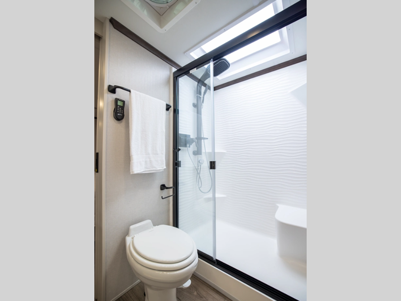 The Forest River RiverStone fifth wheels and toy haulers are luxurious units that have it all! You'll find an automatic six-point hydraulic level-up system to keep your unit in place, and there is preparation for a four-camera observation system. The TravlFi Journey XTR 4G/LTE router and WiFi extender will help you stay connected to the outside world, and you'll never have to overpack again since the Splendid “Astral” stackable washer and dryer will let you clean the small amount of clothes you've brought with you. Another high luxury is the Fischer Paykal dishwasher which will allow you to spend more time enjoying your camp life and less time cleaning up. Each unit is built with an LCI Road Armour suspension system, dual-pane frameless windows, a full docking station, a 200W solar panel, and a BMPro touch control system.