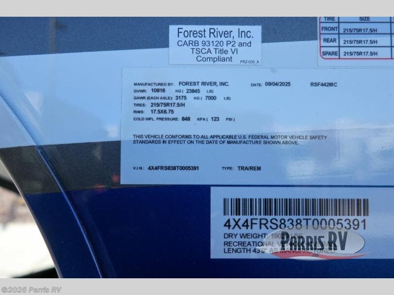 2026 Forest River RiverStone 442MC Specifications