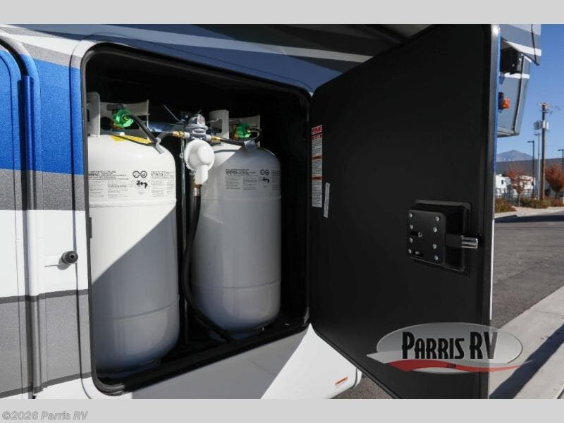 The Forest River RiverStone fifth wheels and toy haulers are luxurious units that have it all! You'll find an automatic six-point hydraulic level-up system to keep your unit in place, and there is preparation for a four-camera observation system. The TravlFi Journey XTR 4G/LTE router and WiFi extender will help you stay connected to the outside world, and you'll never have to overpack again since the Splendid “Astral” stackable washer and dryer will let you clean the small amount of clothes you've brought with you. Another high luxury is the Fischer Paykal dishwasher which will allow you to spend more time enjoying your camp life and less time cleaning up. Each unit is built with a LCI Road Armour suspension system, dual-pane frameless windows, a full docking station, a 200W solar panel, and a BMPro touch control system.
