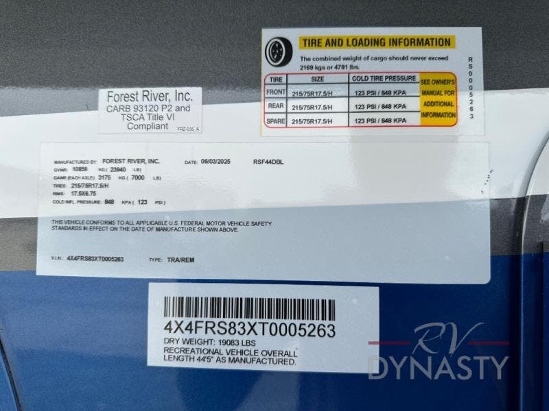 2026 Forest River RiverStone 44DBL Specifications