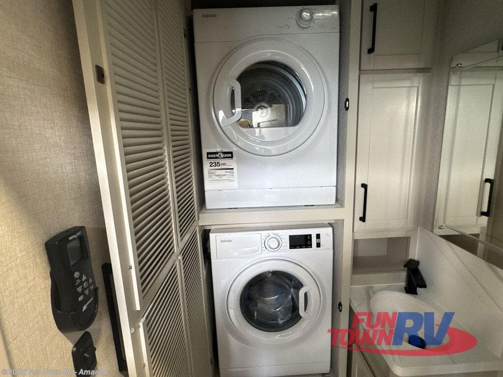 The Forest River RiverStone fifth wheels and toy haulers are luxurious units that have it all! You'll find an automatic six-point hydraulic level-up system to keep your unit in place, and there is preparation for a four-camera observation system. The TravlFi Journey XTR 4G/LTE router and WiFi extender will help you stay connected to the outside world, and you'll never have to overpack again since the Splendid “Astral” stackable washer and dryer will let you clean the small amount of clothes you've brought with you. Another high luxury is the Fischer Paykal dishwasher which will allow you to spend more time enjoying your camp life and less time cleaning up. Each unit is built with an LCI Road Armour suspension system, dual-pane frameless windows, a full docking station, a 200W solar panel, and a BMPro touch control system.