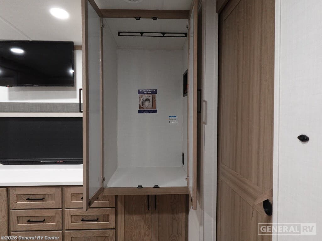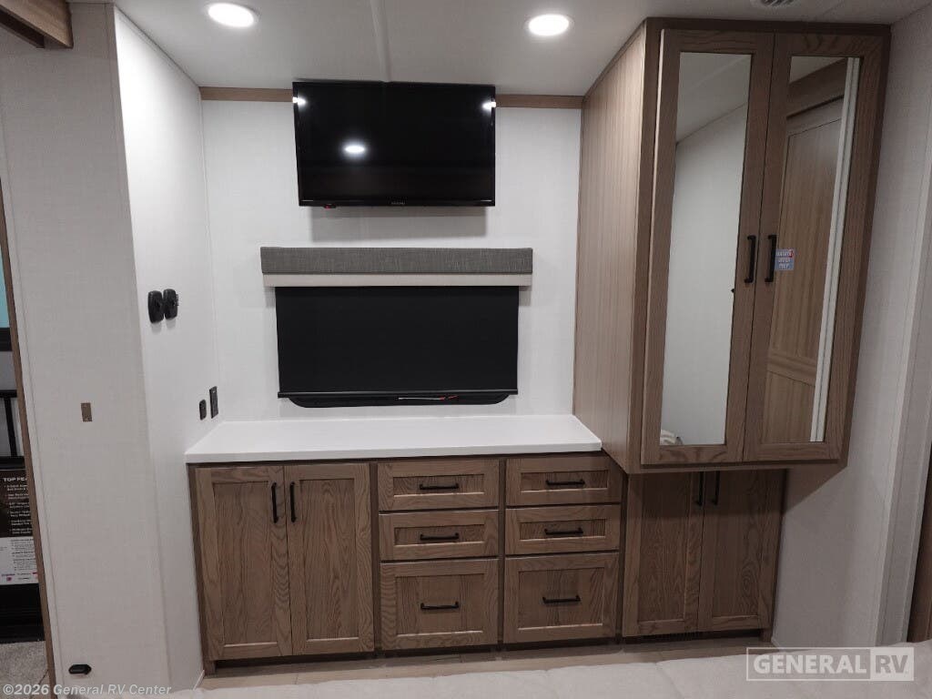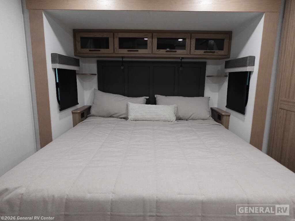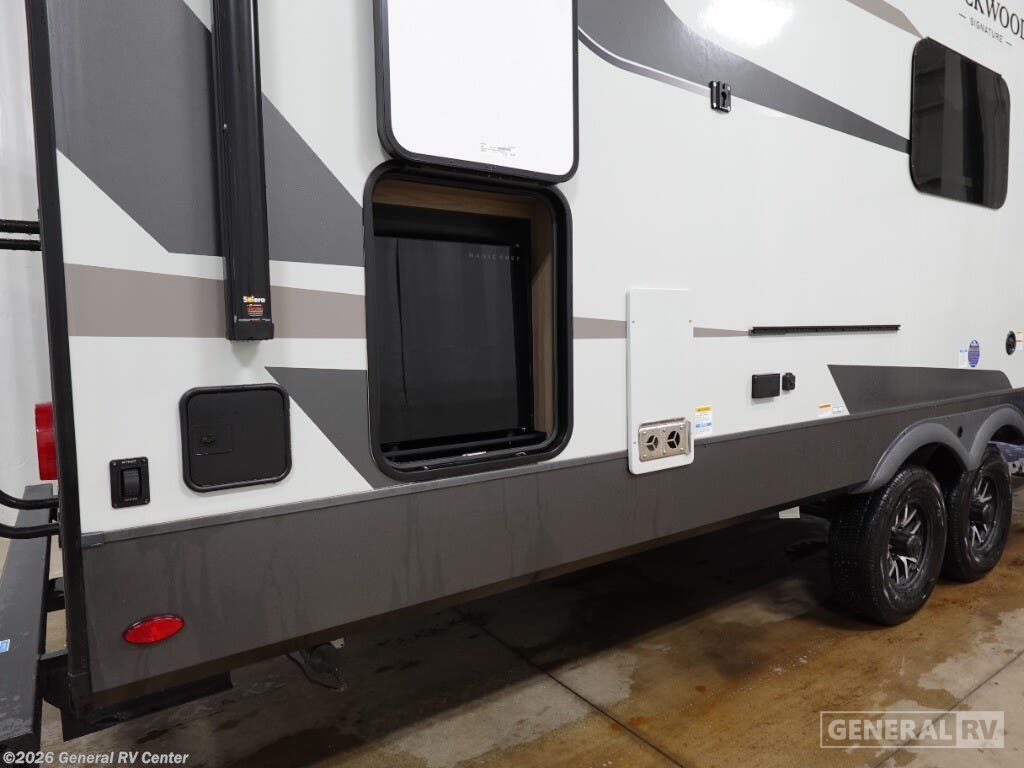 Experience the epitome of luxury and comfort with the 2025 Forest River Rockwood Signature 8263MBR. This impressive travel trailer offers a spacious and thoughtfully designed layout, perfect for those who crave both adventure and relaxation. At nearly 30 feet in length, it features a front kitchen that invites culinary creativity with its three-burner cooktop and full-size electric refrigerator. The center living area is a haven of comfort, boasting a plush 67-inch theater seat that promises cozy evenings after a day of exploration. The centerpiece of this RV is the luxurious king-sized bed in the center bedroom, offering a restful retreat with ample storage space including a wardrobe and dresser. The rear bath, equipped with a plastic and glass shower, adds a touch of sophistication to your daily routine. With a 19-foot powered retractable awning, you can extend your living space outdoors, creating the perfect setting for alfresco dining or simply enjoying the fresh air. The Rockwood Signature 8263MBR is your ticket to memorable journeys, where comfort meets style. For more details or to see it in person, visit your nearest General RV dealership.