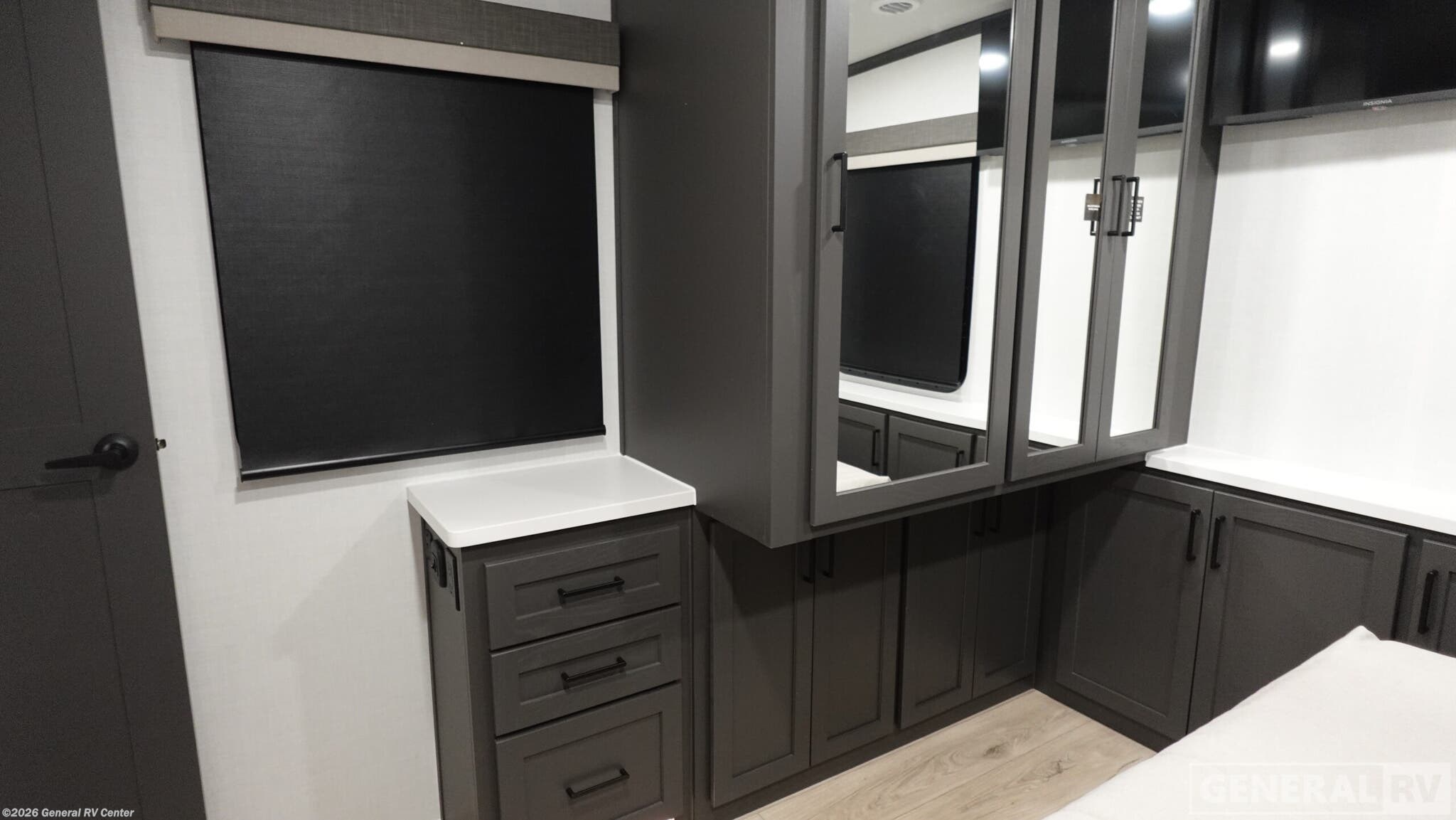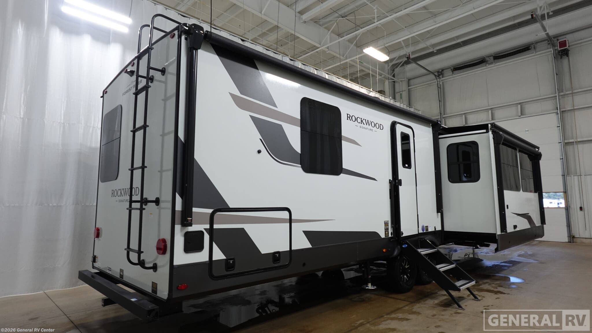 Experience the pinnacle of luxury and comfort with the 2026 Forest River Rockwood Signature 8339FK. This elegant travel trailer is designed for those who appreciate the finer things in life while exploring the great outdoors. With a spacious layout spanning 36 feet, this model offers ample room to relax and entertain. The front kitchen is a chef's delight, featuring a well-appointed pantry, a large fridge, and plenty of counter space for meal prep. Gather around the cozy fireplace in the living area, complete with a 67” theater seat and a 60” hide-a-bed, perfect for enjoying movie nights or hosting guests. The master suite is a sanctuary of its own, boasting a king-sized bed and abundant storage options, including a wardrobe prepped for a washer/dryer. The thoughtfully designed bathroom offers convenience and comfort, ensuring you feel at home wherever your adventures take you. With three slides and two awnings, outdoor living is as enjoyable as the indoors, providing shade and space for alfresco dining or simply soaking in the natural surroundings. Ready to embark on your next journey? Visit your nearest General RV dealership to explore this remarkable travel trailer in person.