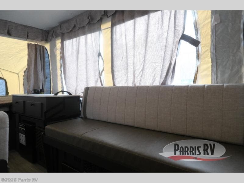 With any Rockwood Freedom Series by Forest River, you will enjoy added features to make each excursion one to remember. These folding pop-up campers feature a fiberglass laminated roof, wood plank flooring, and a two tone fiberglass exterior. The Dexter sprung axles, electric brakes, and radial tires with nitrogen will make towing easier than ever, plus there are four stabilizer jacks with sand pads to help keep your unit secure. Each model also includes an awning with LED lighting outdoors, along with a one-piece screen door, two 20 lb. LP bottles, and a power roof lift to have you set up in no-time. Inside, the 15K under-bunk A/C and 20K BTU furnace will help keep you comfortable, and the Maxxair fan will keep the air moving!