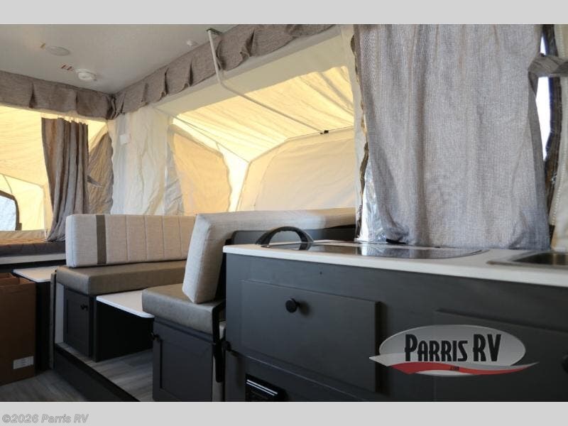 You won't have to worry about length restrictions or cumbersome towing because this Rockwood Freedom Series folding pop-up camper provides you with a lightweight and flexible alternative to heavy RVs! This camper has a single slide built into it which will deliver extra space to the interior without adding to the overall width while traveling, and the booth dinette is a functional piece of furniture that can serve as a dining table and a bed. The swing galley includes a two burner range with a cover to cook meals and a sink for easy cleaning. There is also a shower/toilet to make this unit even more convenient.
