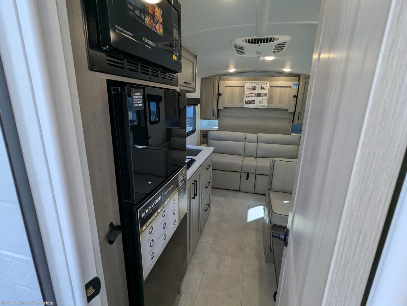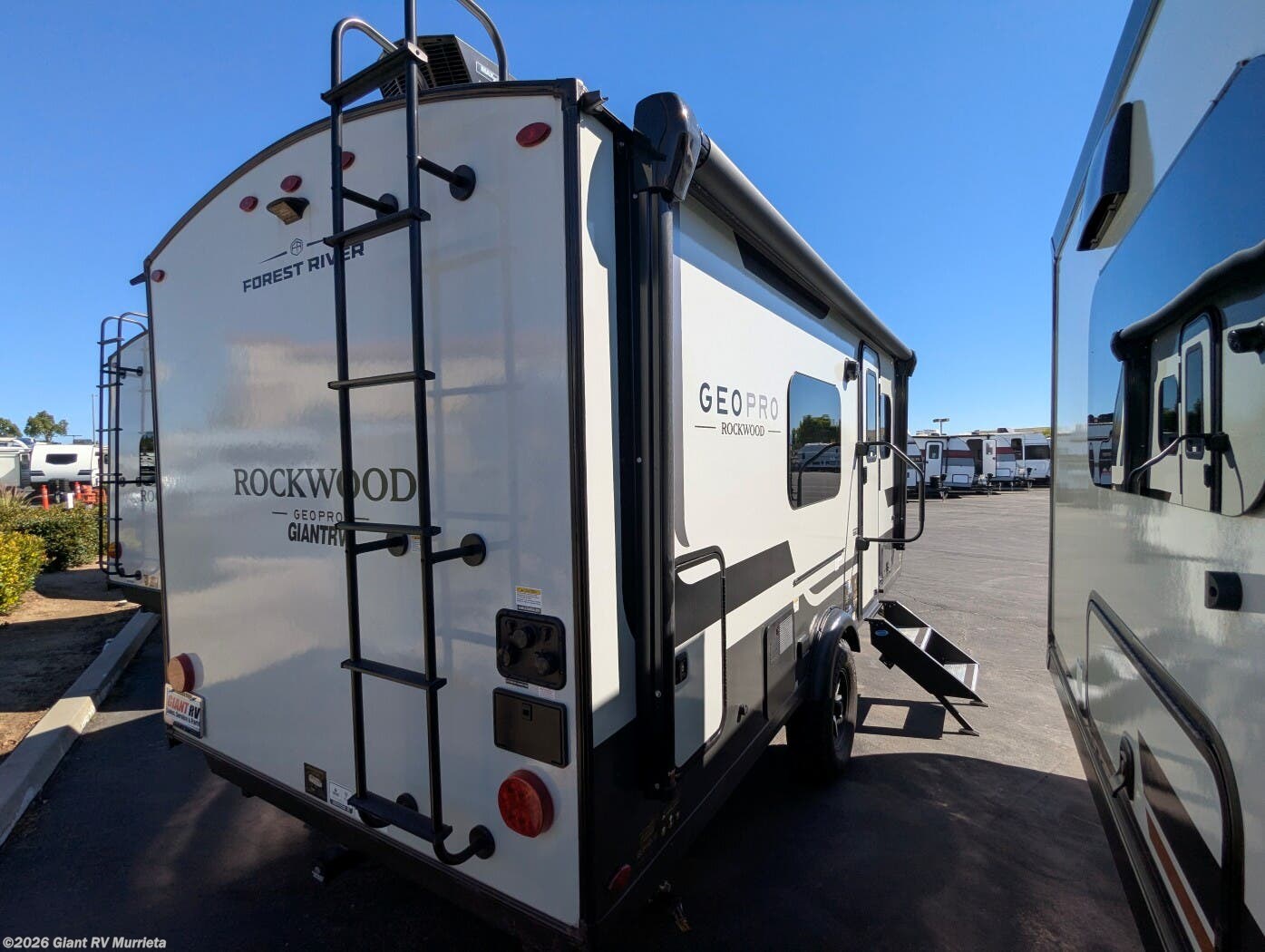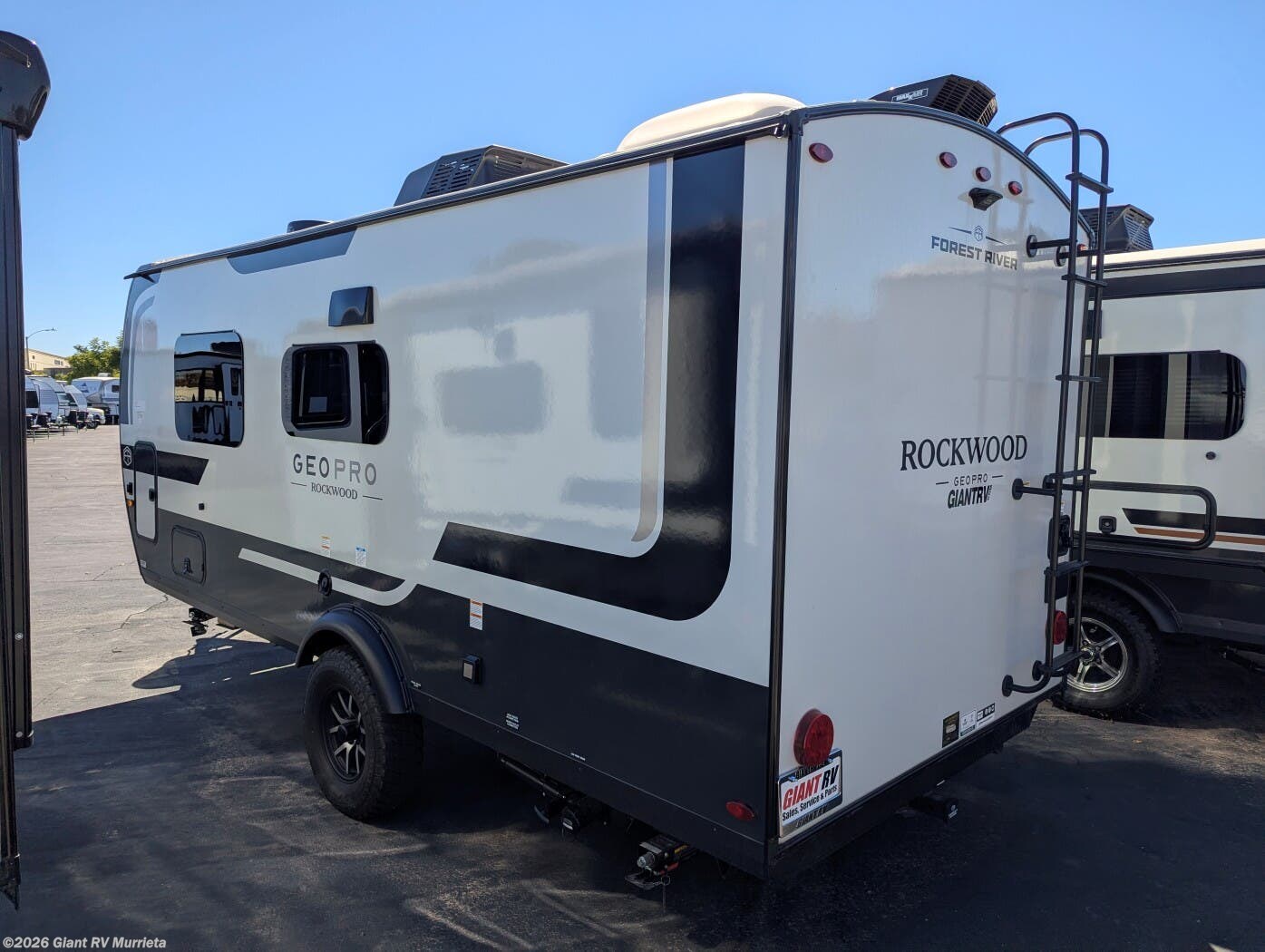 At Giant RV, your trusted dealership, find the 2026 Forest River Rockwood Geo Pro G19FD with a space-saving Murphy bed, panoramic dinette windows, solar package, 12V refrigerator, Maxxair fan, and outside griddle. Visit Giant RV to explore financing and tour your next adventure!