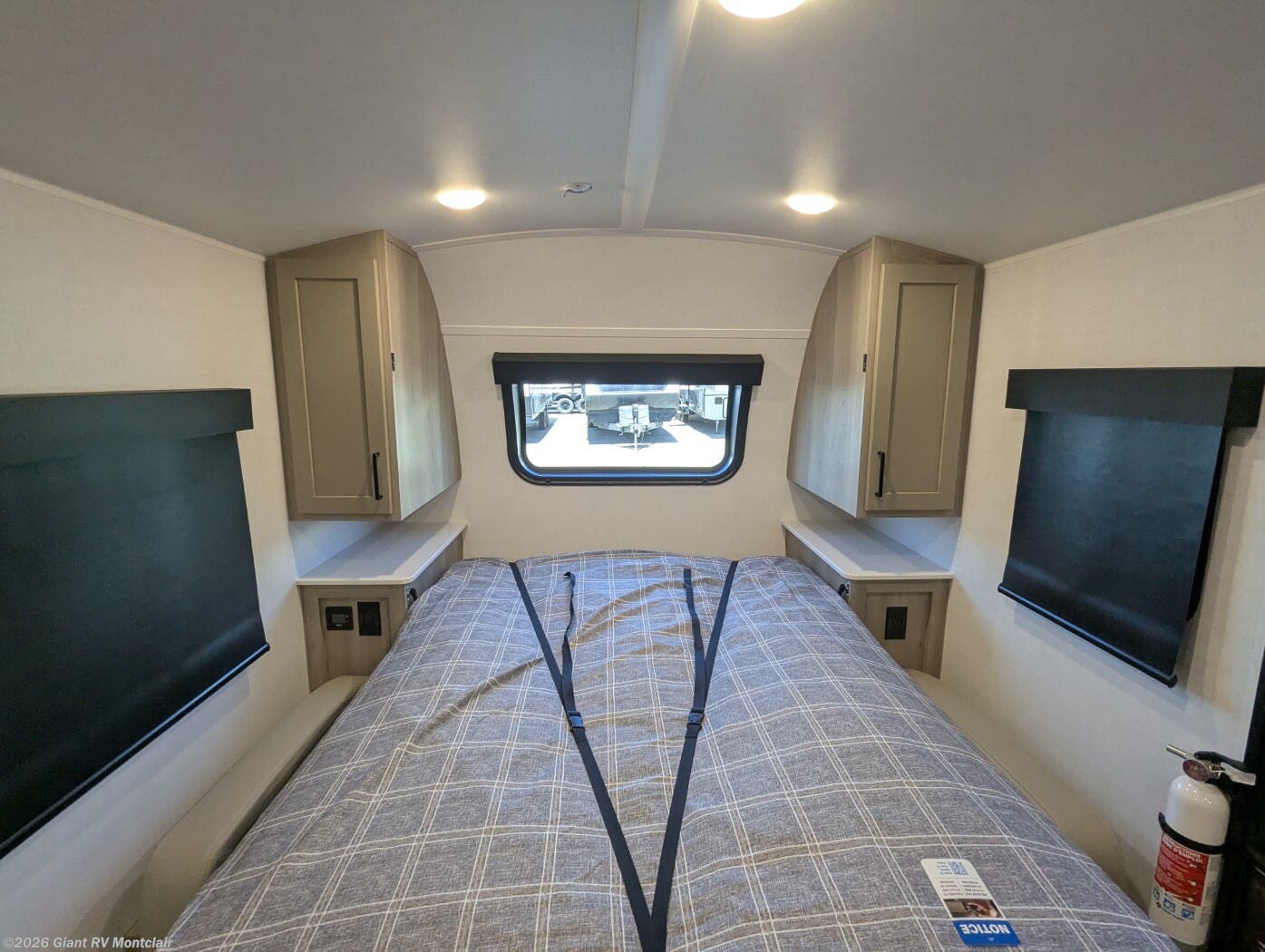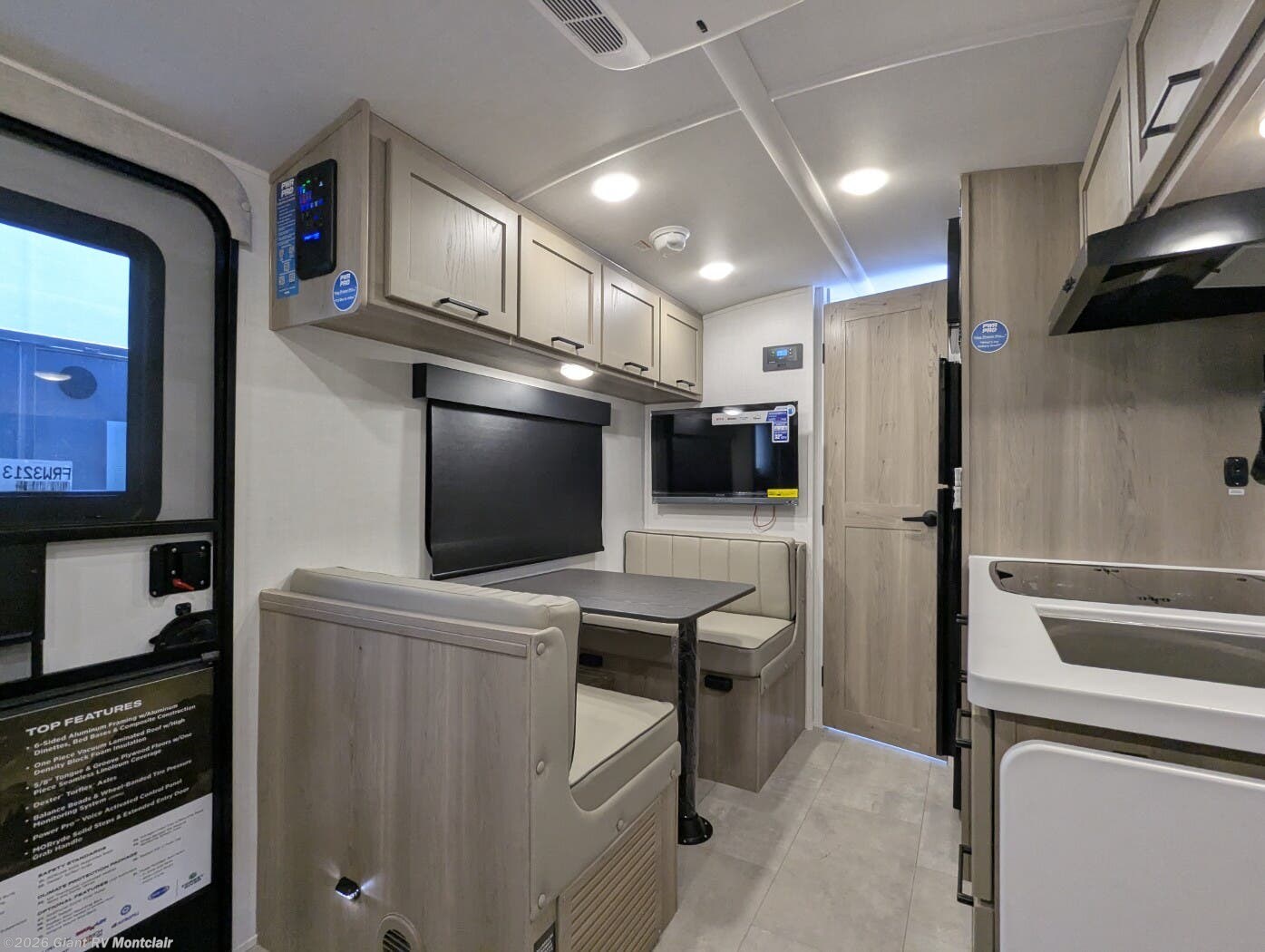 - Full Rear Bath: Spacious bathroom with a 24" x 36" shower, porcelain toilet, and Maxxair fan for comfort.