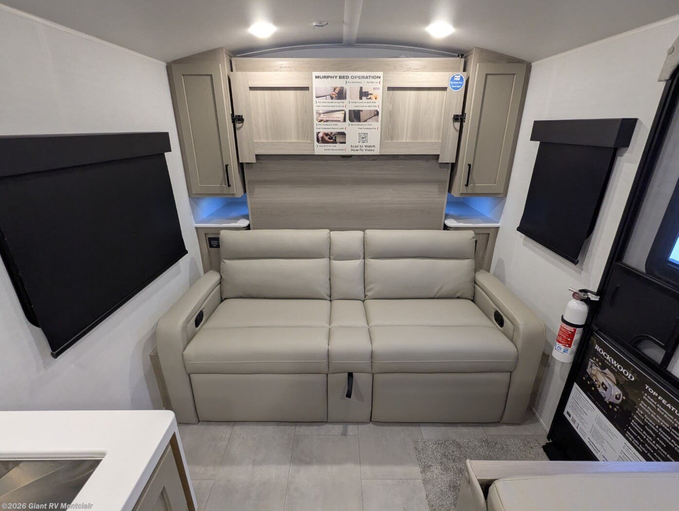 - Murphy Bed: Front bedroom with a 54" x 74" Murphy bed that folds into a 72" sofa, sleeping up to 3 with ample storage.
