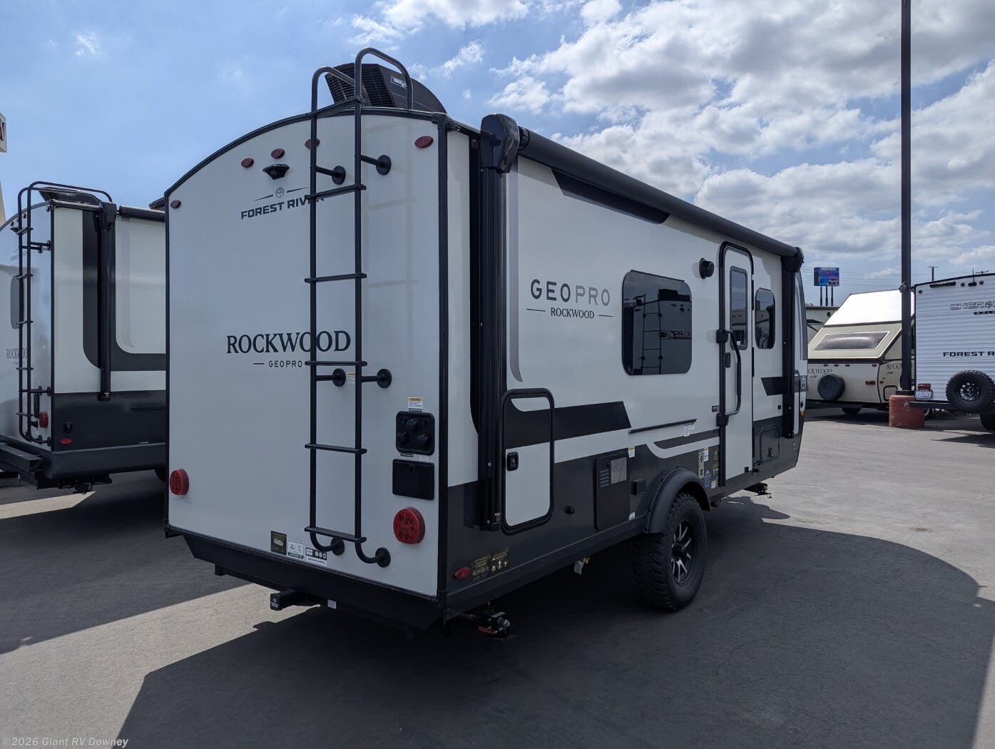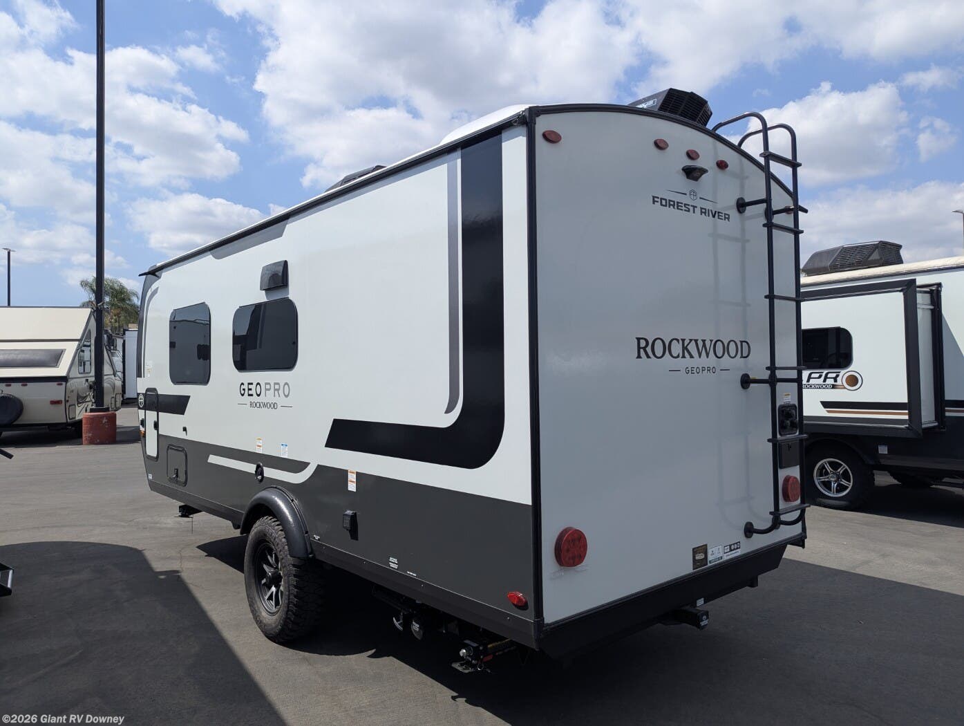 Discover adventure with the 2026 Forest River Rockwood Geo Pro G19FD, a lightweight travel trailer perfect for couples or small groups. Available at Giant RV, this Geo Pro G19FD features an aluminum cage frame, complete composite wall construction, and a 3,417 lb. dry weight with a 1,015 lb. payload. With a Murphy bed and off-road capabilities, it’s ideal for RV camping.