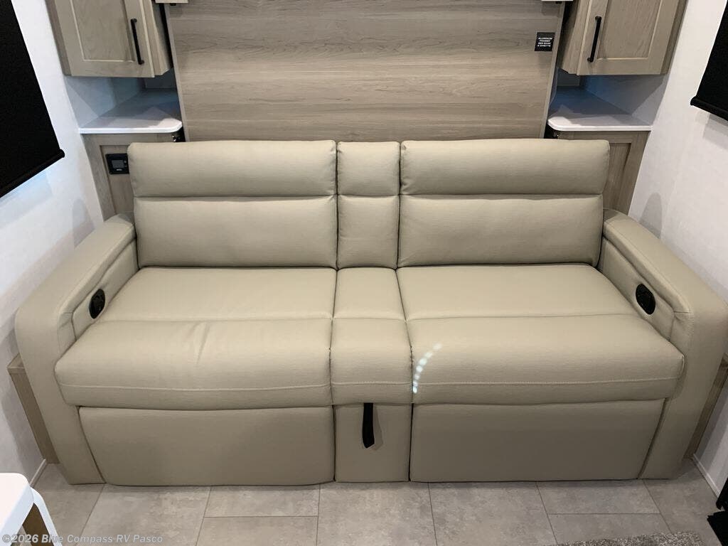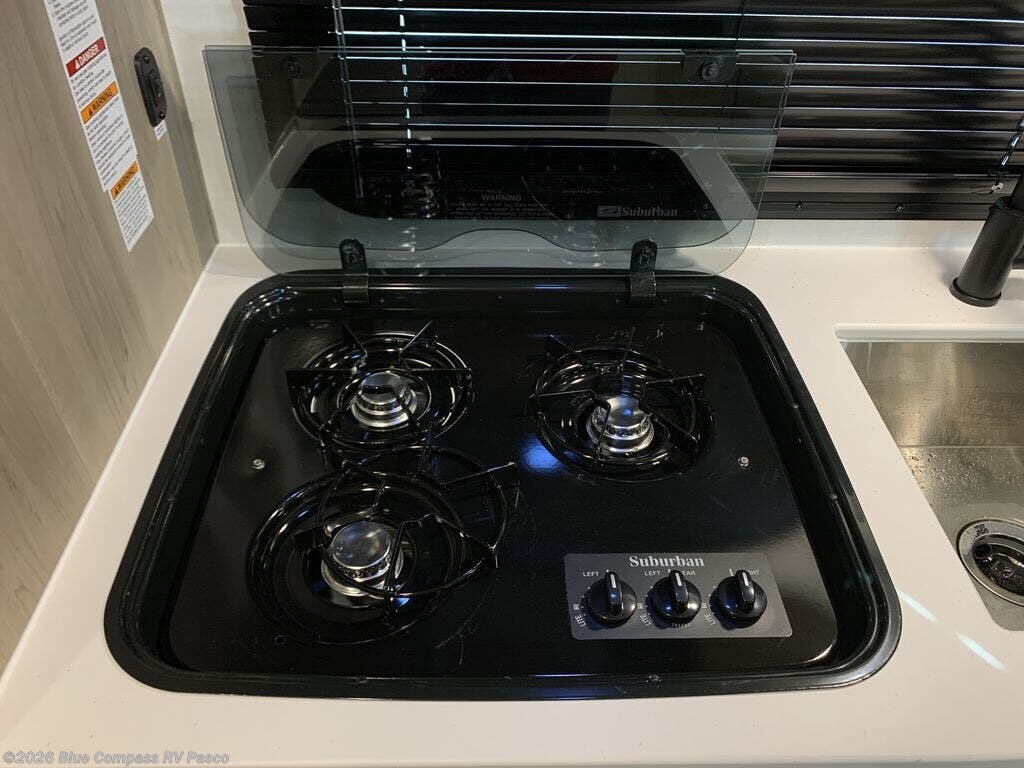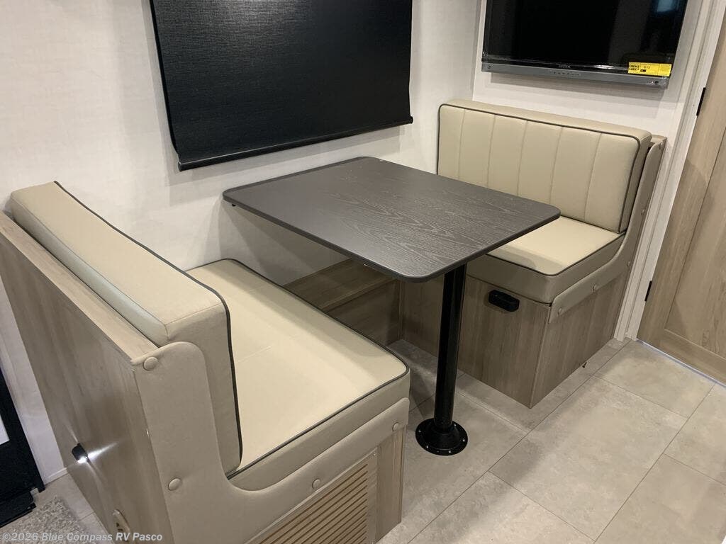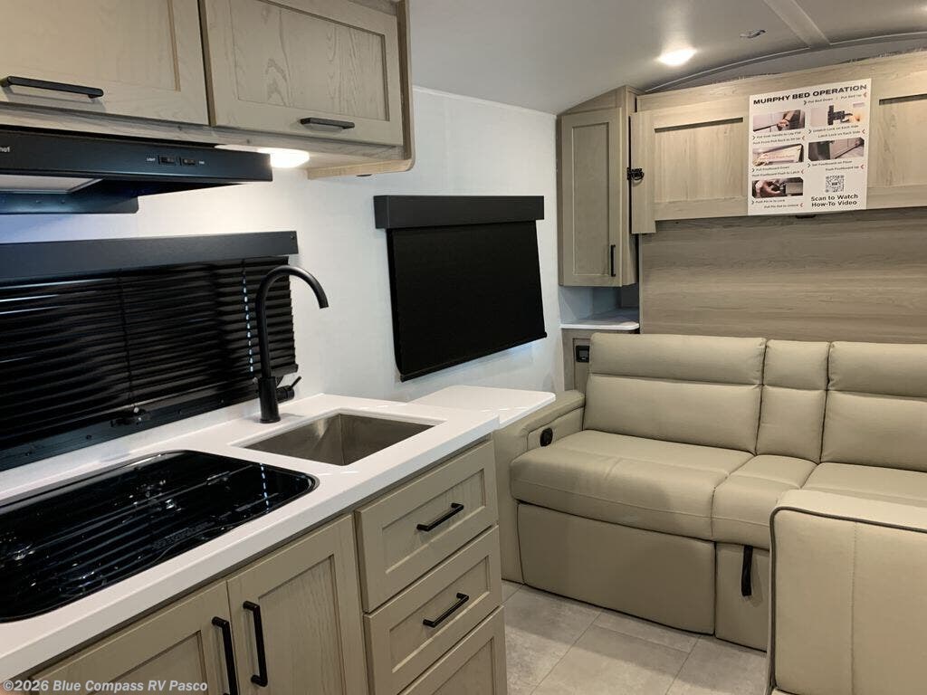 You will love how versatile this travel trailer is thanks to the Murphy bed up front. After you've had a great night's rest, just fold it up to relax on the 72" sofa. This will give the chef more space in the morning to prepare breakfast on the three burner cooktop or in the microwave oven. There is a 32" booth dinette to dine at, or you may just want to take your plate outdoors under the 14' power awning. The full rear bath includes a large linen closet to store clean towels. You will appreciate a pass-through storage, plus additional exterior storage so you can bring along hiking gear, water tubes, and fishing poles!