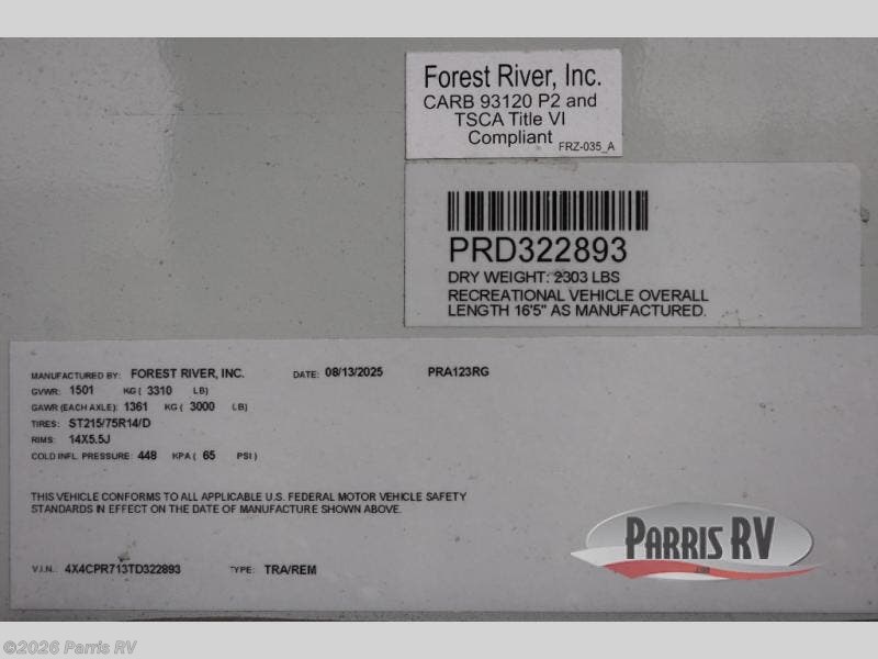 Request More Info on this 2026 Forest River Rockwood Hardside Series A123RG Offered for sale by Parris RV