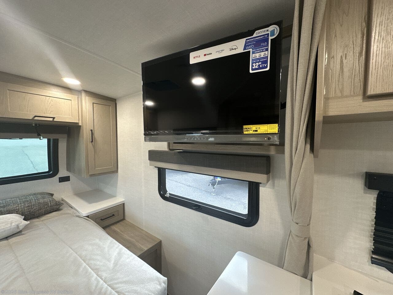 Wherever you decide to camp, you will love every minute in this cute couple's trailer. The sofa slide with a table will provide a place to relax, eat, and even sleep an extra guest if you have one, and the front RV queen bed includes a privacy curtain to enjoy your own space. There are dual bedroom wardrobes to keep your clothes tidy, and you'll find two pass-through storage compartments for your larger gear. An outside griddle with an LP hookup will allow you to make breakfast outdoors, and there is a three burner cooktop indoors if the weather isn't cooperating. Since there is a full bath on board you won't have to use the camp's facilities, and you can make it a movie night with the 32" TV in the main living area!