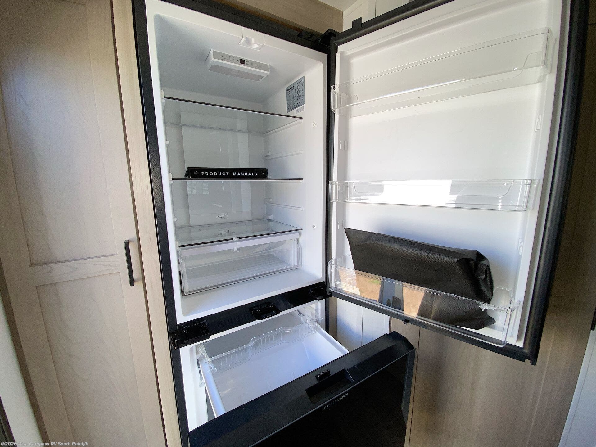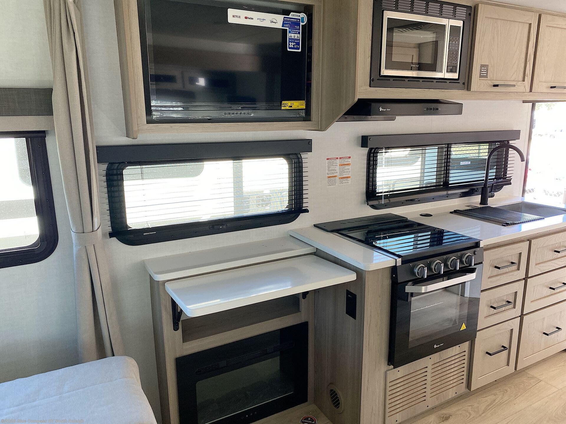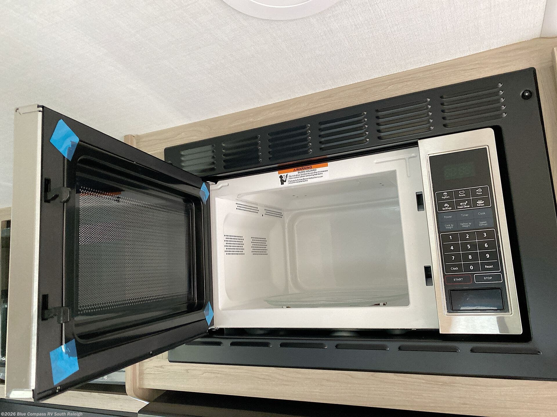 Enjoy the camping season with your spouse, friend, or significant other in this cozy travel trailer for two. Each morning, you can have your coffee on the 67" theater seats with a table within the slide out, then head outdoors to make pancakes on the outdoor griddle with an LP hookup. The interior kitchen includes a three burner cooktop, a microwave oven, plus a 12 volt refrigerator for perishables. An entertainment center with a fireplace will make your space feel more like home, and what's better than sleeping on your own queen bed with dual bedroom wardrobes for your clothes!?
