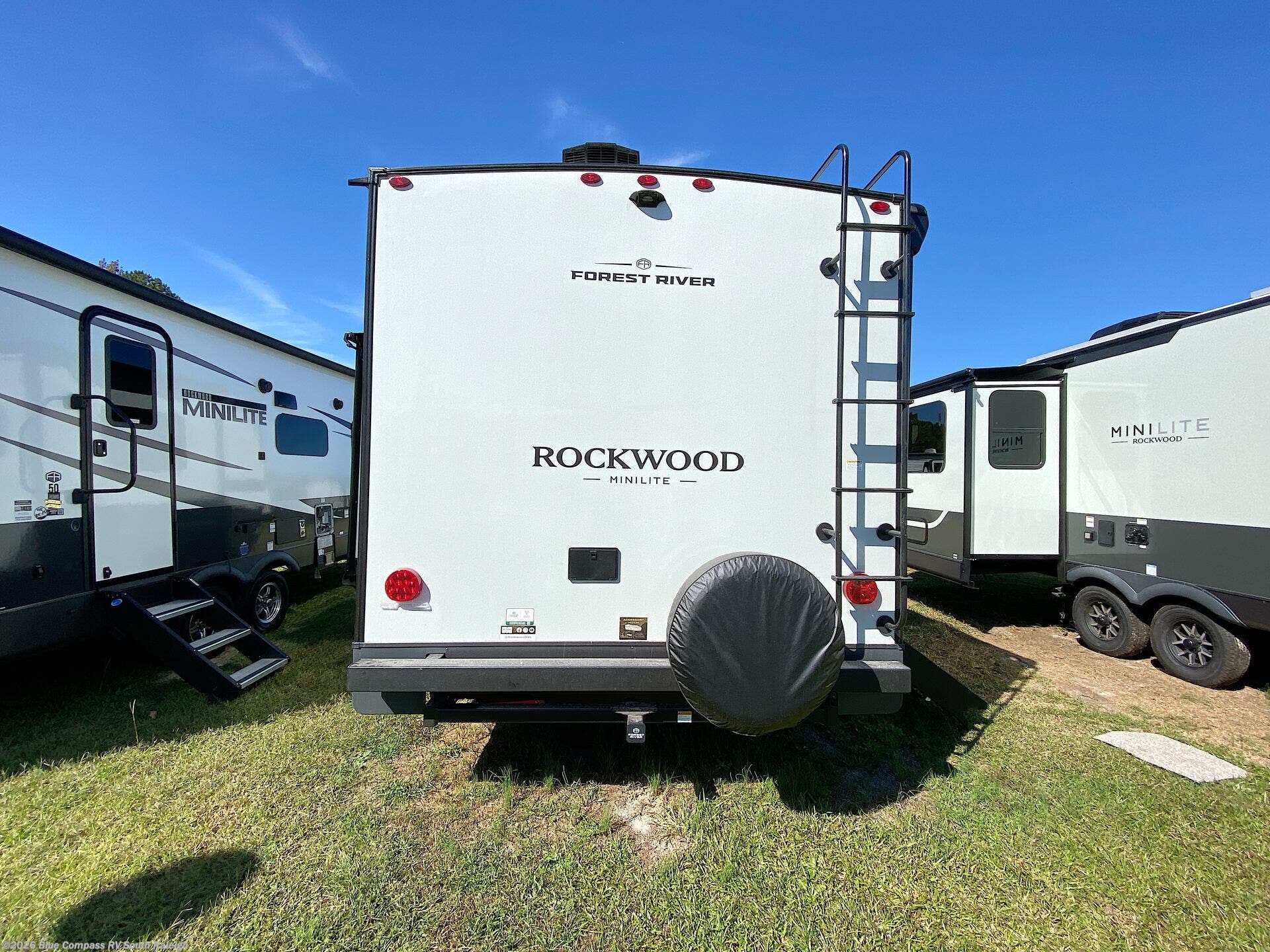Each Rockwood Mini Lite travel trailer by Forest River is constructed with a fully laminated one-piece walkable roof, sleek frameless windows, and a six-sided full aluminum frame for strength and durability. The 12V thermostatically controlled heated tanks, plus radiant foil in the underbelly will allow you to camp well into the colder months, and the 200W roof solar panel will be perfect for a little off-gridding. Each model includes solid surface kitchen countertops, hidden hinge cabinet doors, roller shades, plus many more interior features. Having an AIR 360+ omnidirectional antenna with WiFi prep on board gives you the option to get some work done if it's needed, and the power tongue jack provides hassle-free set up, so you can enjoy more time relaxing!