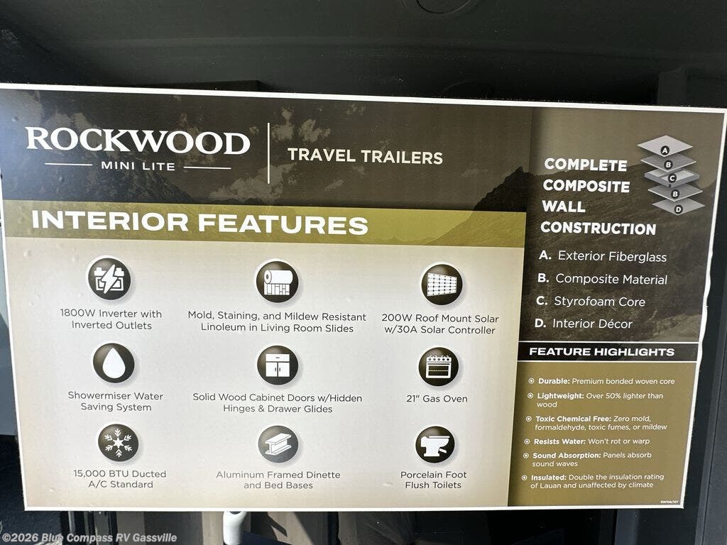 Request More Info on this 2026 Forest River Rockwood Mini Lite 2205S Offered for sale by Blue Compass RV Gassville