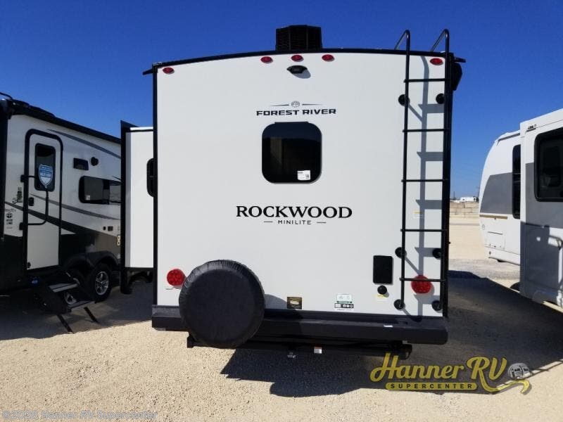 Each Rockwood Mini Lite travel trailer by Forest River is constructed with a fully laminated one-piece walkable roof, sleek frameless windows, and a six-sided full aluminum frame for strength and durability. The 12V thermostatically controlled heated tanks, plus radiant foil in the underbelly will allow you to camp well into the colder months, and the 200W roof solar panel will be perfect for a little off-gridding. Each model includes solid surface kitchen countertops, hidden hinge cabinet doors, roller shades, plus many more interior features. Having an AIR 360+ omnidirectional antenna with WiFi prep on board gives you the option to get some work done if it's needed, and the power tongue jack provides hassle-free set up, so you can enjoy more time relaxing!