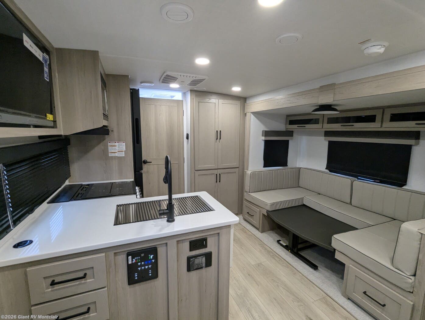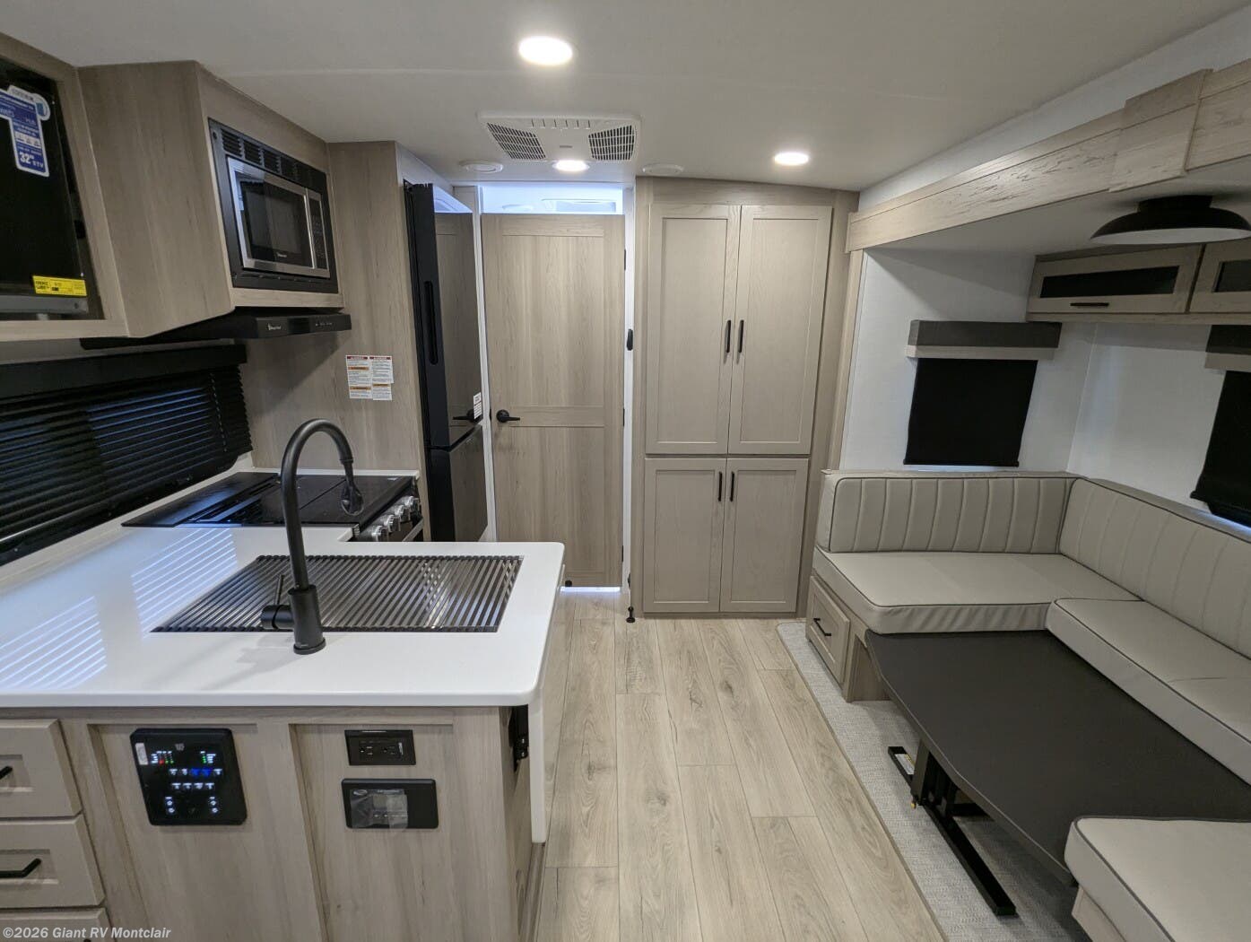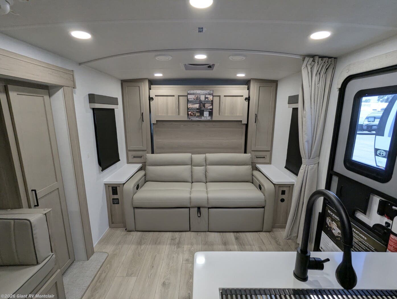 Versatile & Cozy Layout: Sleeps up to 4 with a front 60” x 74” Murphy bed, U-shaped dinette slide, and full rear bathroom for camping comfort.